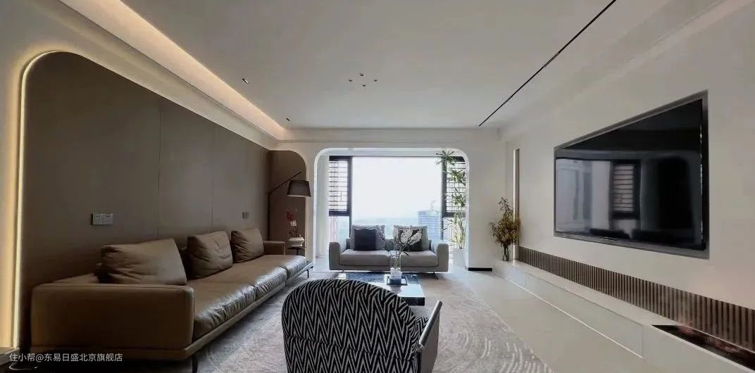 客厅里,深浅不一的色调、肆意生长的植物、白色的艺术漆……一切似乎都融为一体,形成了更具层次感和立体感的装饰效果。