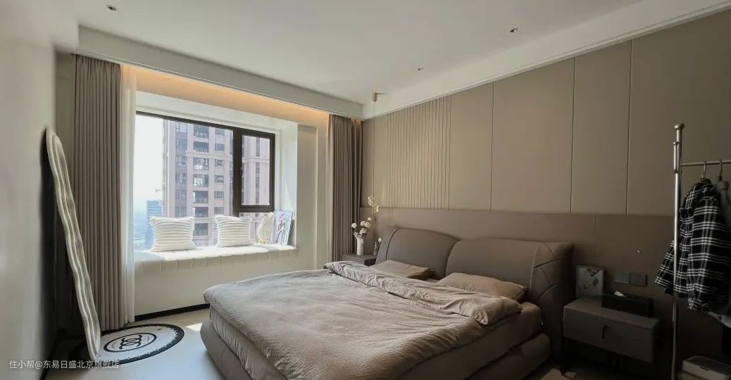 卧室延续了公共空间的主色调,整个空间散发着写意之美,古朴典雅。