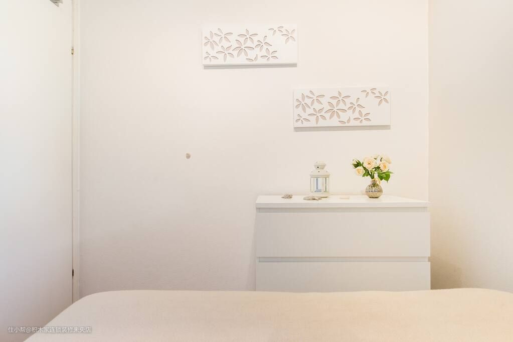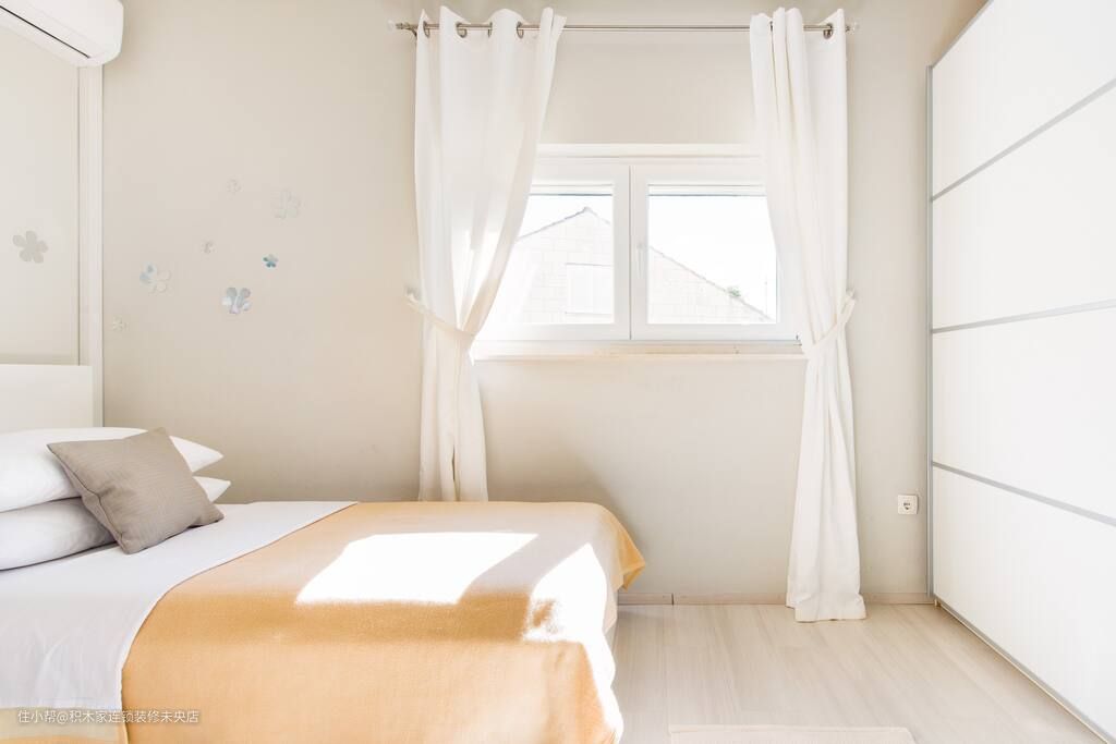 次卧同样采用了日式简约风格,让整个空间显得简洁而不失温馨。选择了浅灰色的地板和奶油色的墙面和床铺,呈现出干净而富有质感的感觉。同时,次卧还配置有到顶衣柜和床头柜等基本家具,保证了居住的实用性。
