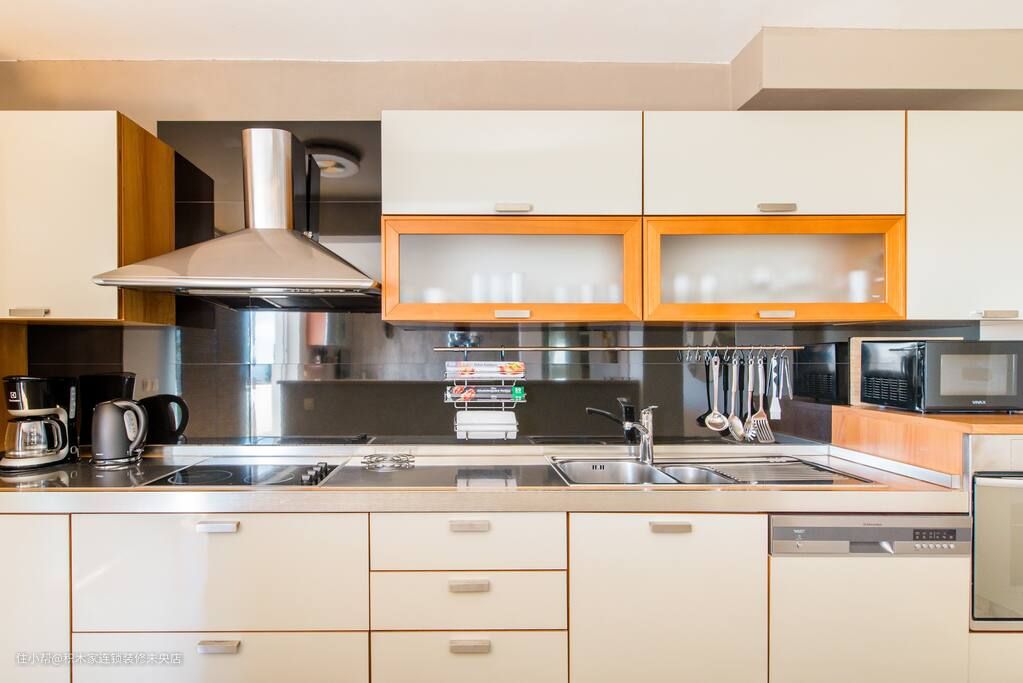 厨房是美食的殿堂,也是女主人的工作区域。为了保持整屋风格统一,厨房的设计风格小编也选择了日式简约风格。厨房的吊柜和橱柜都采用了白色的木纹板材,轮廓均增加了金色的点缀几何线条,整体增加了厨房的明亮感。同时,在处理好厨房的空间规划和功能分区的时候,重点将所需要的厨具均做了嵌入式的设计,在上下橱柜之间的墙面设计了灰色的墙砖,容易打理且整体显得很上档次。