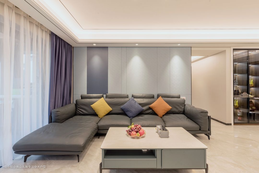 厨房采用了半开放式,增加了光照和互动性,平常不使用时整体拉开,整个客餐厅方正,整体性高。