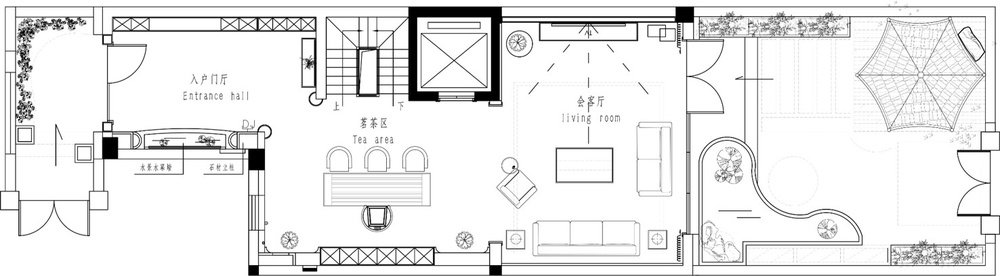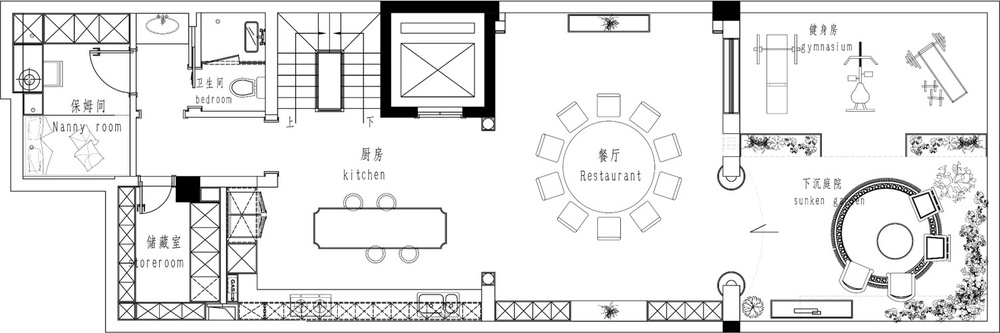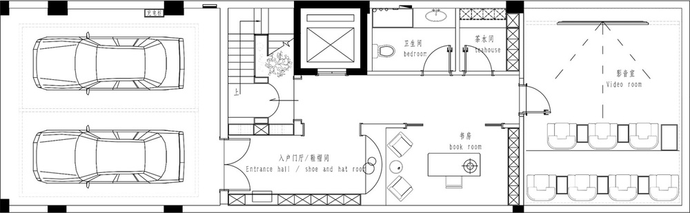 原结构地上三层地下两层的空间,一层花园入户则考虑客厅及茶室区域;二层三层为卧室起居区域及家政区域;负一层餐厨会客及保姆空间;负二层车库入户鞋帽收纳及影视厅空间。