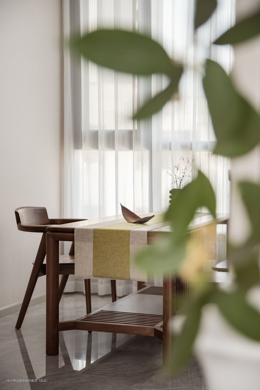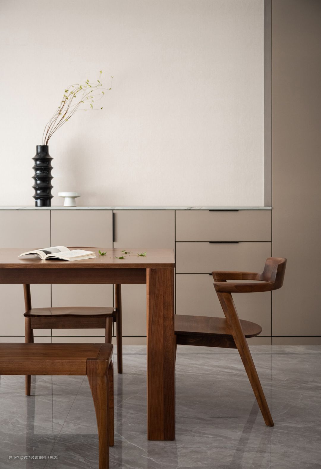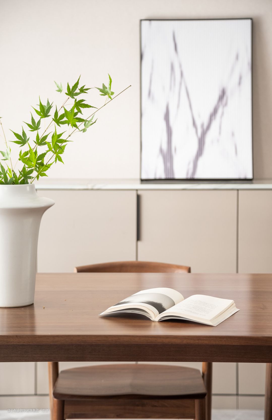 餐边柜那温润的木和利落的线条协调统一了客餐厅的氛围,让精致的生活融入空间的每个角落。