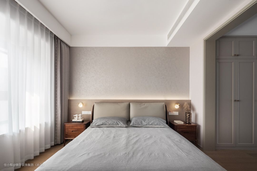 卧室延用了客餐厅的设计格调,增加了更多的木饰面带给居室更多的亲切感与温馨。主卧配备独立化妆和衣帽区,容纳了业主在此的精致生活品质,生活之美,更是内心沉淀的修养由内向外的气韵。让房间产生温度的不仅仅是收纳,功能,颜值,还有对生活和家的热爱。