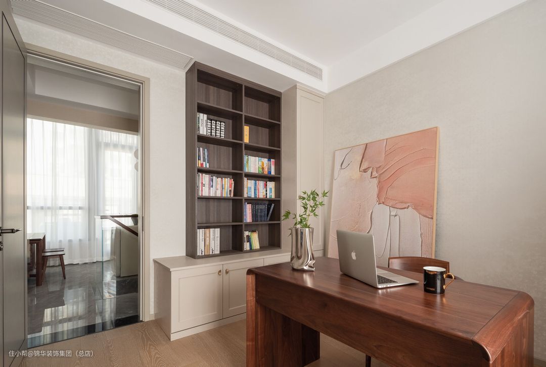 二楼书房和休闲厅相连,书房是男主人的空间,他是一位工程设计师,平时最大的爱好就是独处看书学习。用他的话来说,他需要有一个可以冥想的空间。书柜的设计比较巧妙,随手拿书可以坐着靠在矮柜上看,细节处体现的是一家人之间的包容。 项目风格:现代简约 项目地址:南京-五矿澜悦栖园 项目面积:160㎡