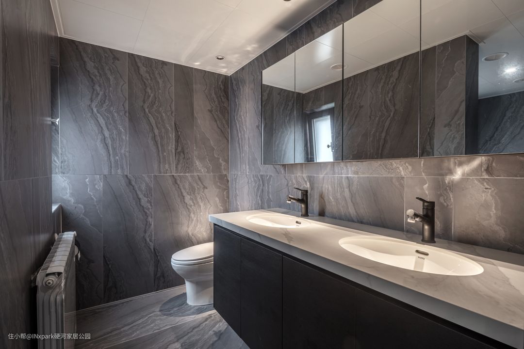 卫生间设计两个台面,可以供家人一起洗漱,增进感情。