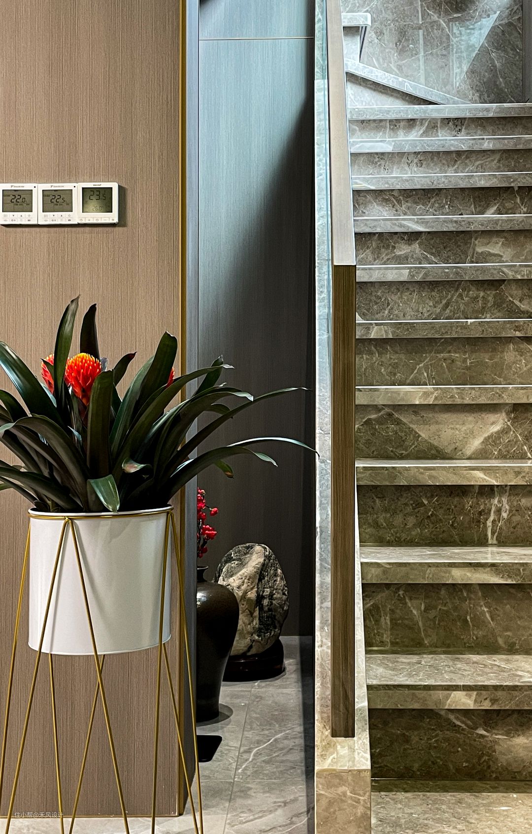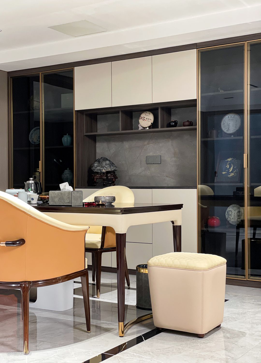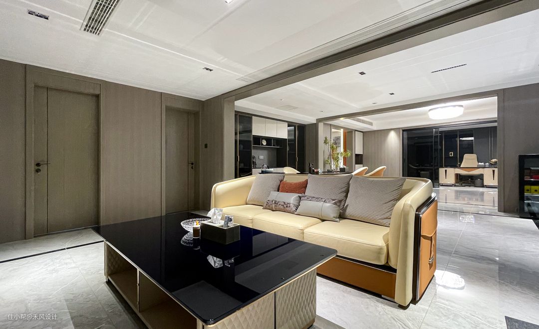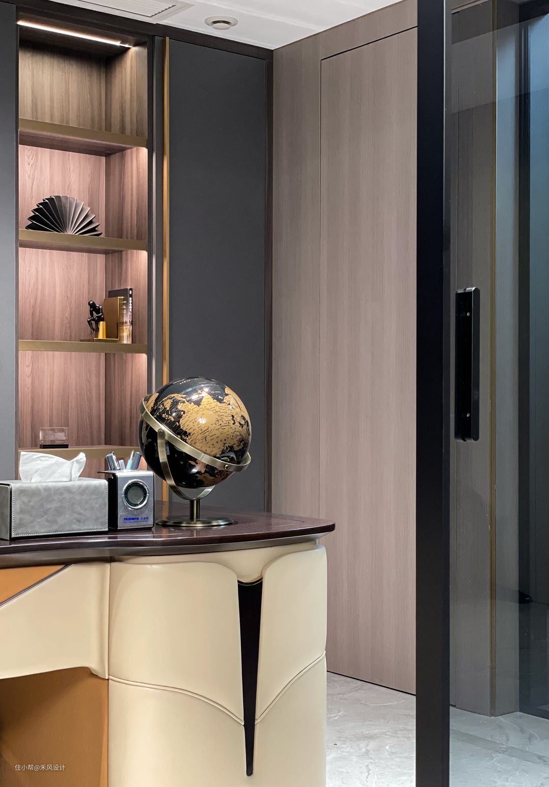 【居住人口】 三代同堂设计,双层楼满足一家人的居住需求~ 【书房改造】 半开放式书房设计,增加玻璃移门,保证绝对安静空间来办公~ 【储物柜】 靠墙定制满墙柜,利用金属线条进行装饰点缀,提升整屋的精致感~