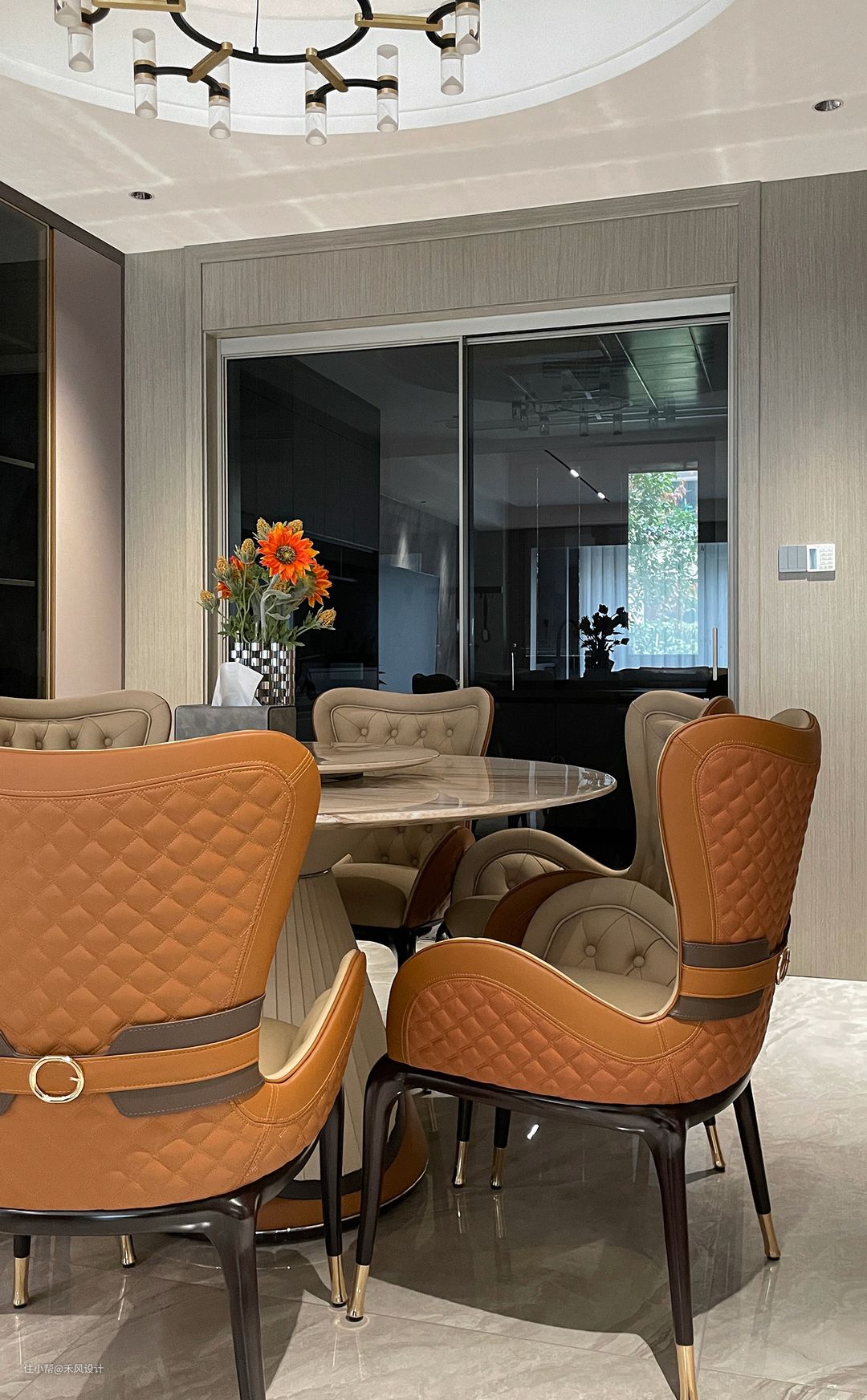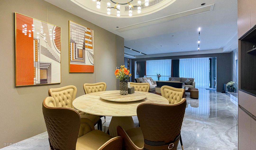 1、定制大圆桌,圆桌在中国有着圆满团圆之意,而且能满足一家三代人居住需求。 2、全屋通铺地砖,800*800,浅灰色更显通透。