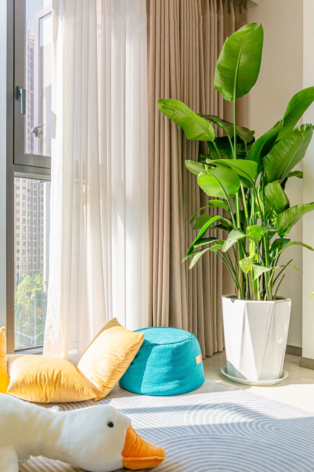 业主是幸福的一家四口,儿女双全,所以需要两个儿童房,另外女主人希望家里光线更好一些,想要宽敞通透的感觉~家里老人偶尔会来家里带孩子,所以也考虑到了老人的审美,做了不容易出错的现代简约风,在软装上加入了很多俏皮可爱的亮色元素,满足女主人的少女心~另外拆除了原始户型的阳台隔断,增加室内采光,把洗衣区设计在阳台区域,方便晾晒。