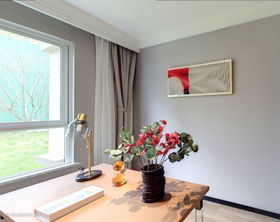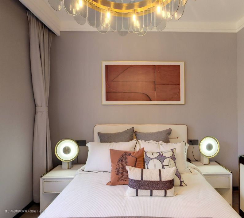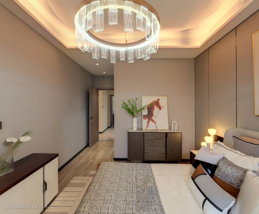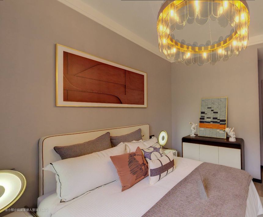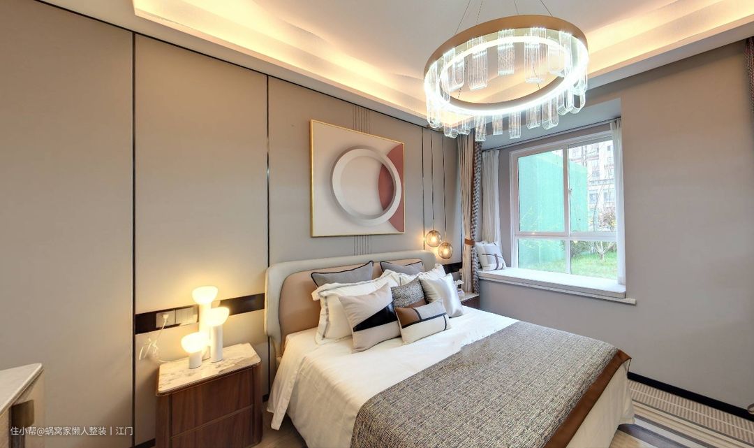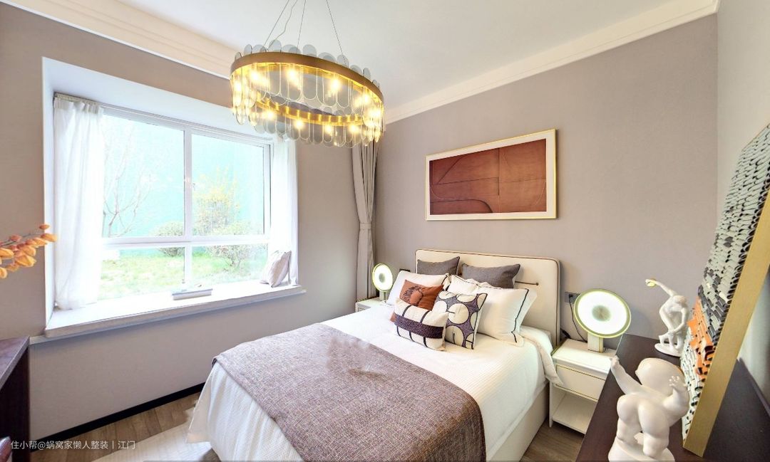 次卧在大采光窗口的映照下,采光变得十分丰富,水晶主灯的设计,拉伸整体空间的氛围格调。