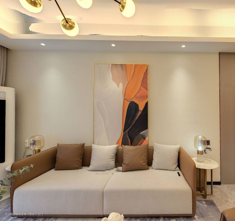 双色拼接布艺沙发,配以几个舒适的抱枕,承载一家人的欢声笑语。