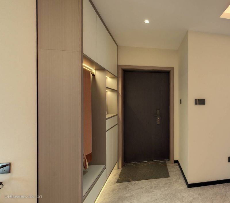 进门便是玄关空间,整体空间过道非常宽敞,整面的收纳柜也为玄关提供了充足的收纳空间。