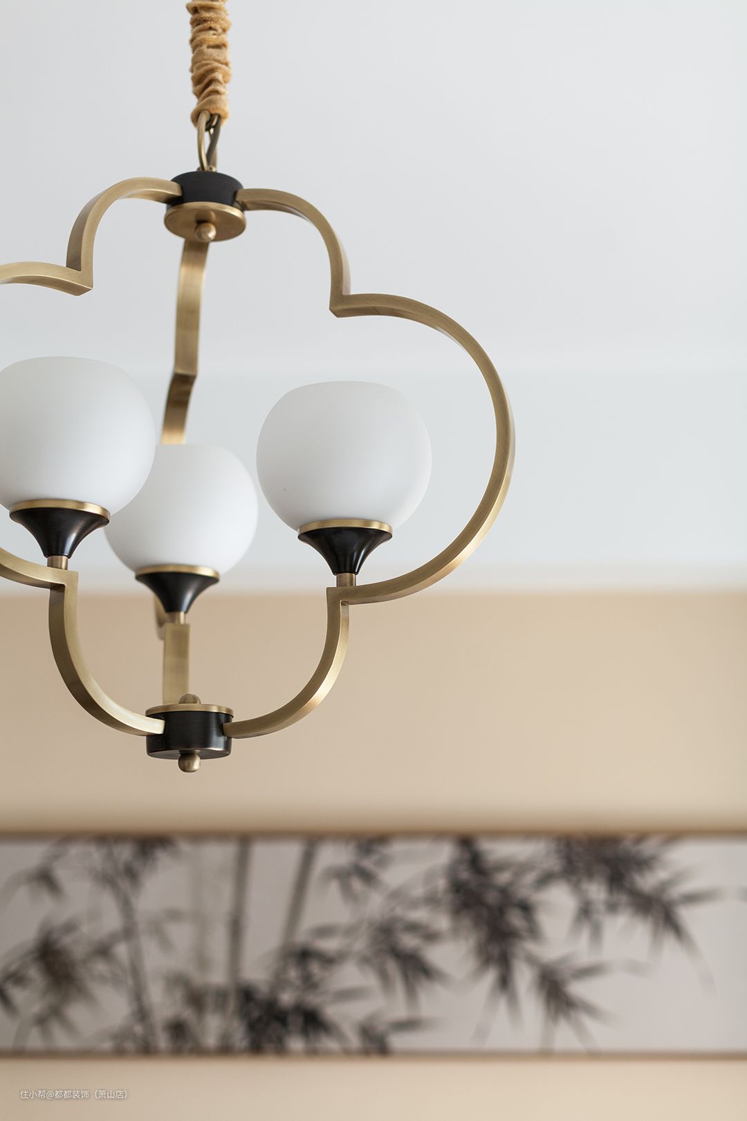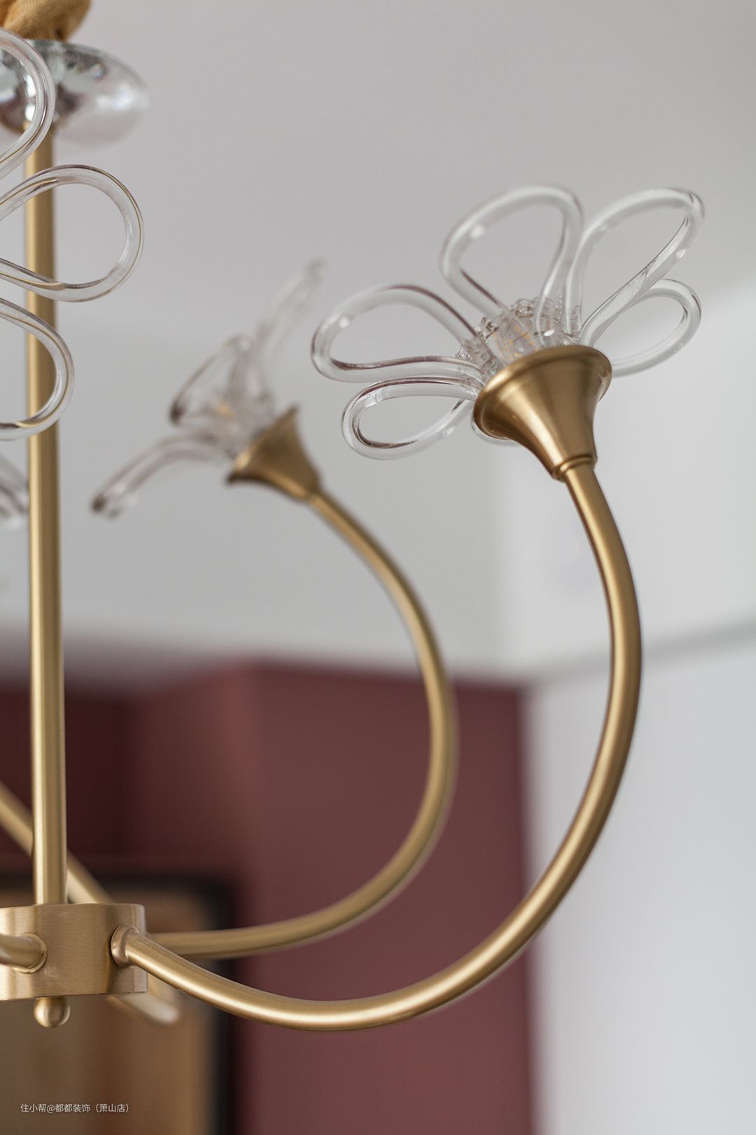 床头花朵灯俏皮可爱,与主灯相得益彰,窗外几缕温暖阳光,透过纱窗照射进来,房间内的生活情愫刻画的栩栩如生。