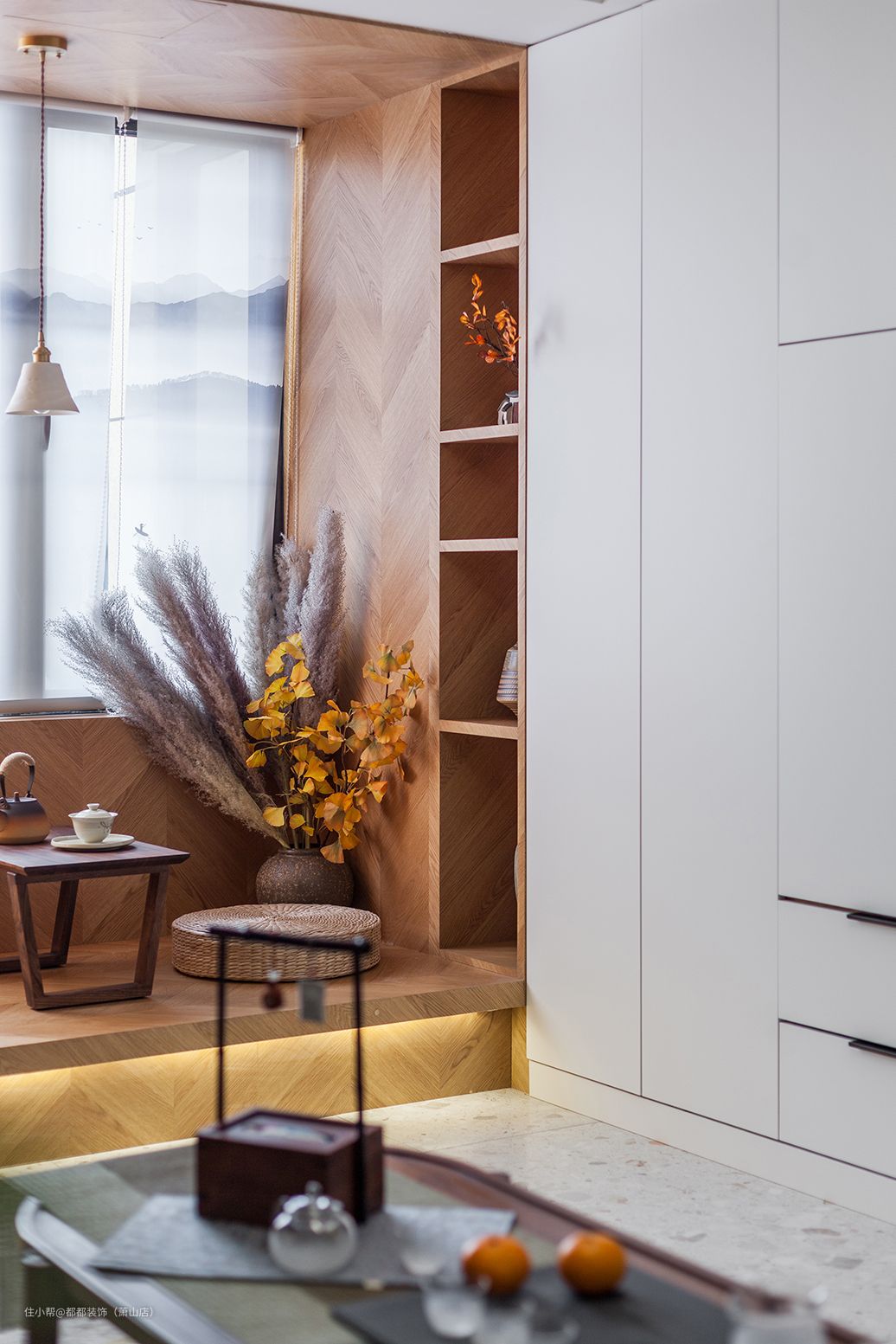假山、干花和纹理装饰画让整个空间更丰富,每天回到家后开灯都有仪式感。
