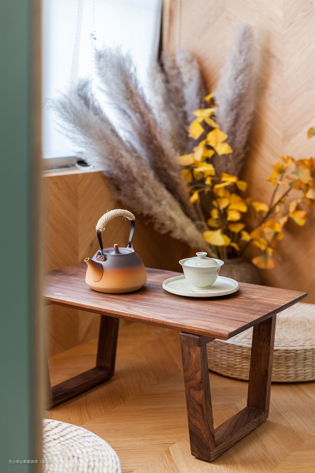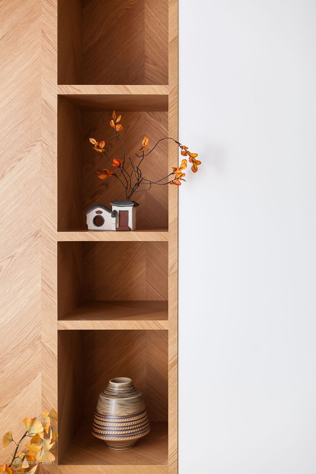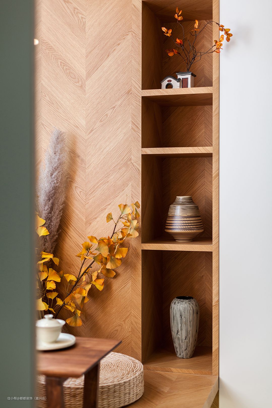 假山、干花和纹理装饰画让整个空间更丰富,每天回到家后开灯都有仪式感。
