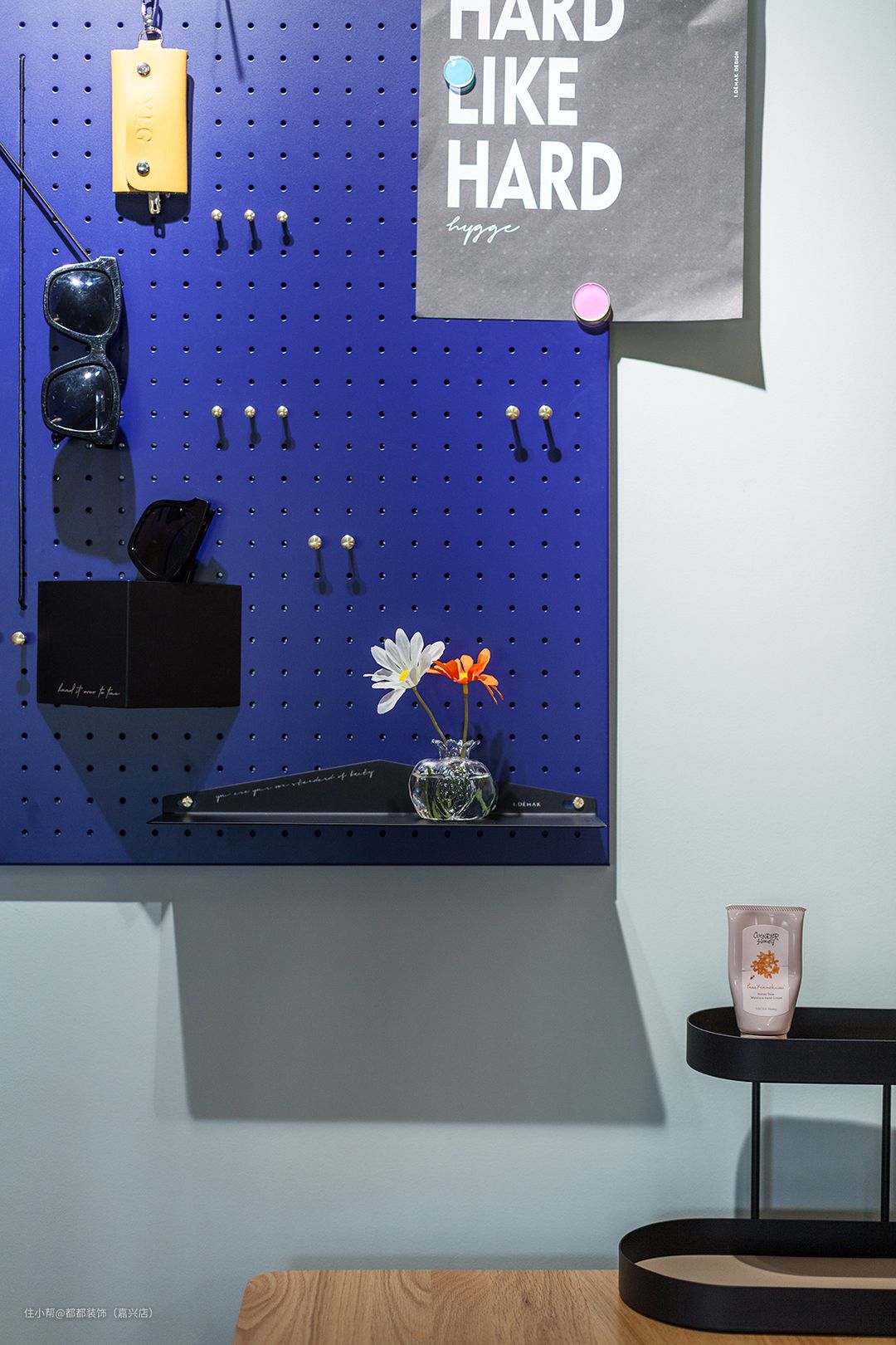 学习区设计感十足,绸带造型壁灯+L型条形灯潮流时尚,铁艺洞洞板搭配小钢针挂什么都不在话在,钉上铁板又是置物架,摆个香薰或者蜡烛都很合适。整墙的衣柜收纳力MAX,顶端放些被子枕头,中间挂平时常穿的衣服,下面放袜子、内衣拿取方便,全身镜也收纳在里面,出门前看看全身搭配,心情会好上一整天!