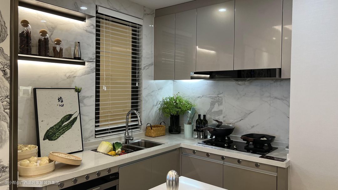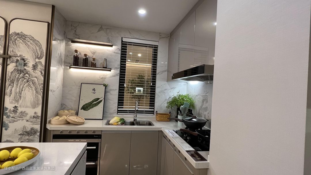 厨房是整个小户型的重心之一,在小空间中却打造出开放式的布局,灰白相间的地砖与全白的墙面设计,让整个厨房更加明亮干净。在厨房的墙面上贴上了水果拼盘的背景墙,简约而别致,让厨房充满生活的气息。在空间利用上做了很多巧妙的设计,让厨房不仅实用而且美观。
