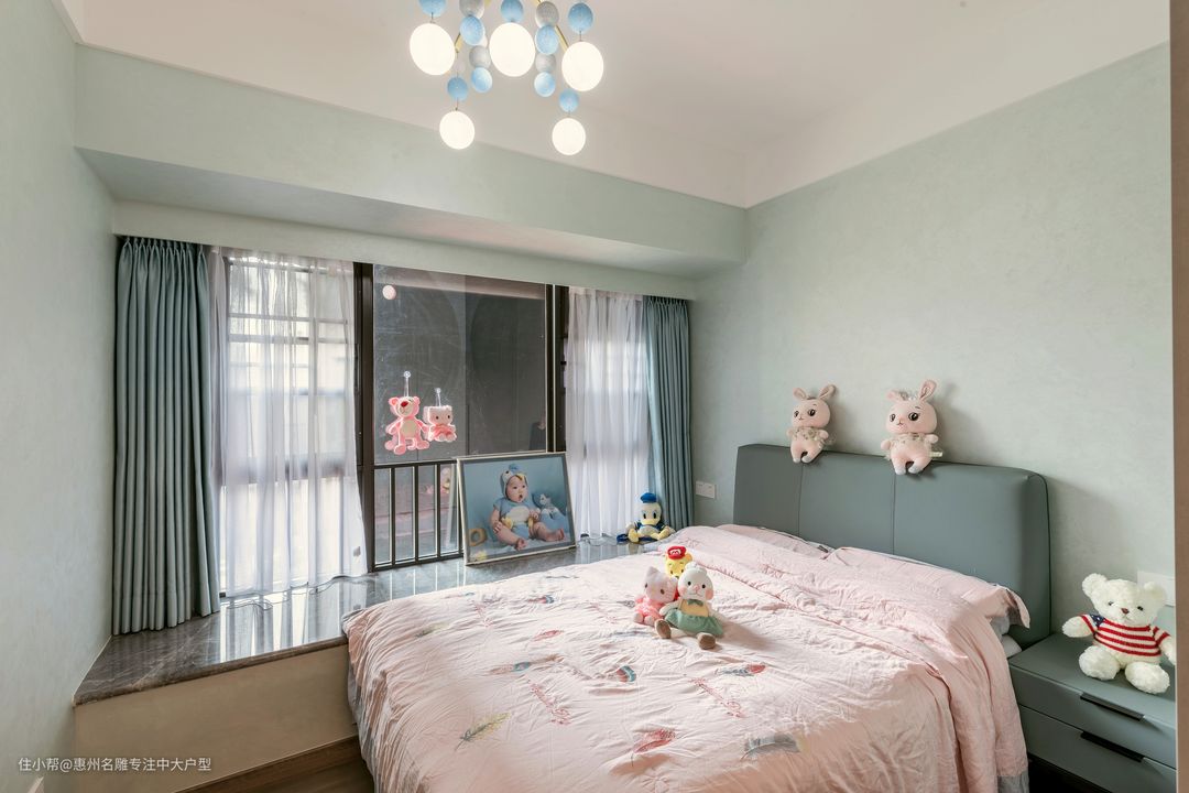 飘窗处放置精致的照片等,处处都透露着孩童的纯真趣致。粉色的色彩调和搭配在一起瞬间生出一种高级质感。