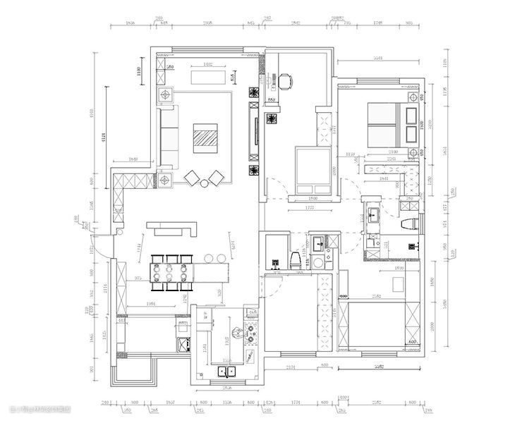 客厅作为待客区域,以简洁明快的设计风格为主调,同时装修较其它空间要更明快光鲜,进深感强。本案户型电视背景墙的设计是整个住宅空间的亮点 ,简单的装饰材料,营造出现代化空间。