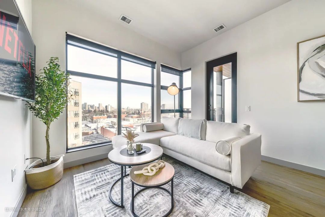 客厅空间在以白色为主的基调中,融入了原黑色作为点缀色,让空间统一又富有变化,简简约大方又极具高级感!加上无主灯的设计,搭配一侧通敞的落地窗,营造出通透明亮的空间氛围,当一侧的阳光落入,给人以刚刚好的温暖舒适感~ 在软装家具搭配上也尽量简洁,米白色的布艺沙发整体造型简洁利落,铺设的白色营造出安稳平和的心灵之境,搭配简易的木色茶几,赋予空间最原始纯粹的氛围~