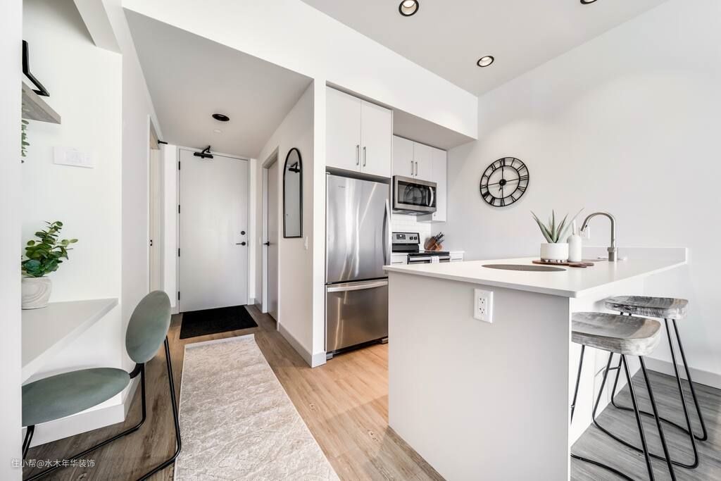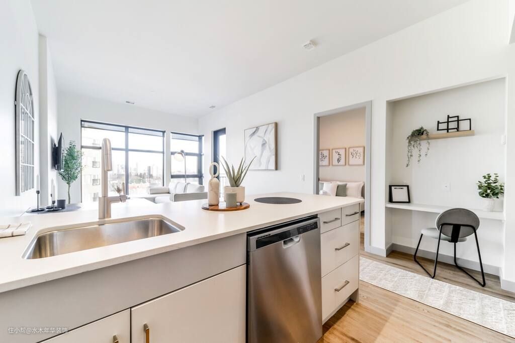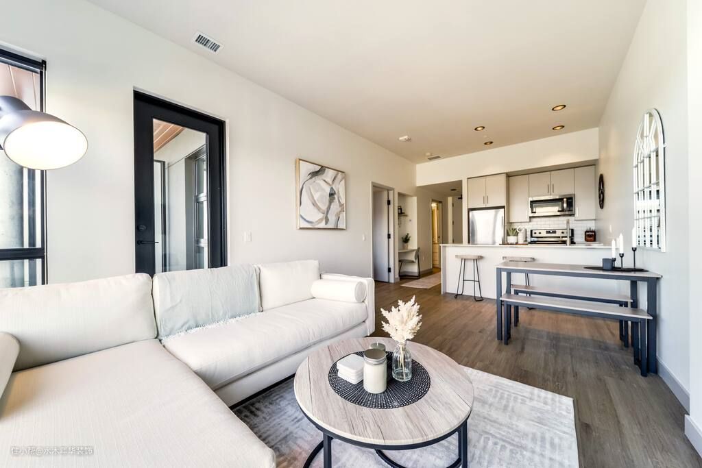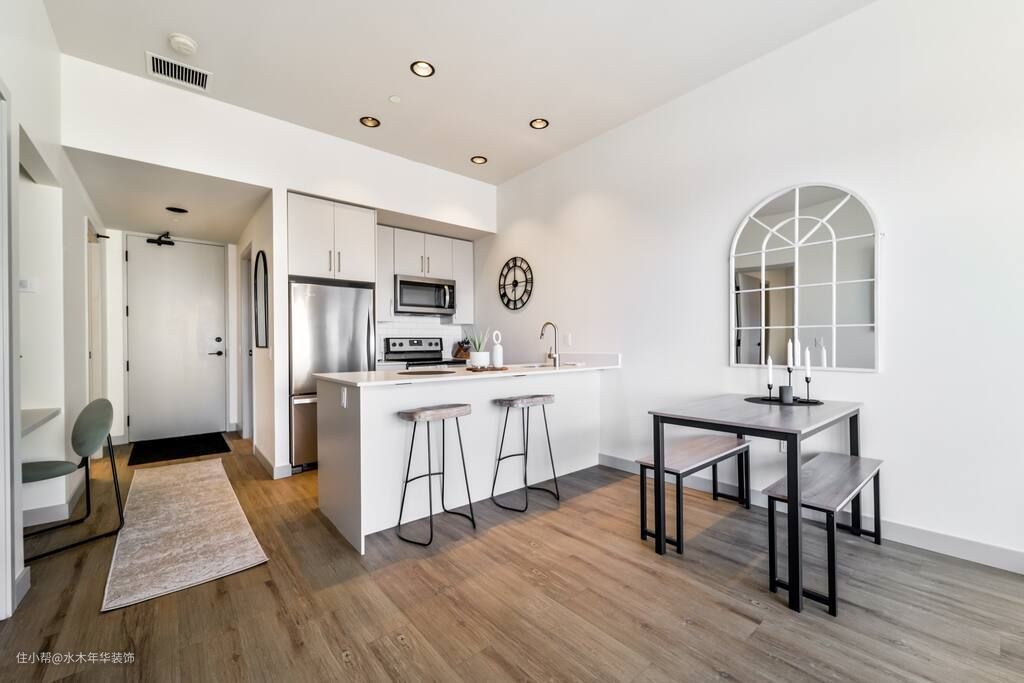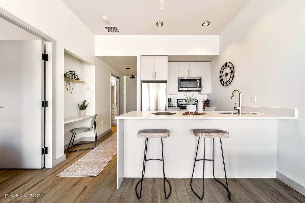 在空间隔绝上拆除厨房原始外侧非承重墙,与客厅做开放式布局设计,视觉上将厨房扩大,整体空间更显通透敞亮,在色彩搭配上根据业主的需求,喜欢沉稳大气的感觉,所以整体以原木和白色为空间主色调,融入小面积的黑色做点缀,使得整体空间呈现出简约现代高级的氛围,让居住的人感受到一种安静舒适和放松~