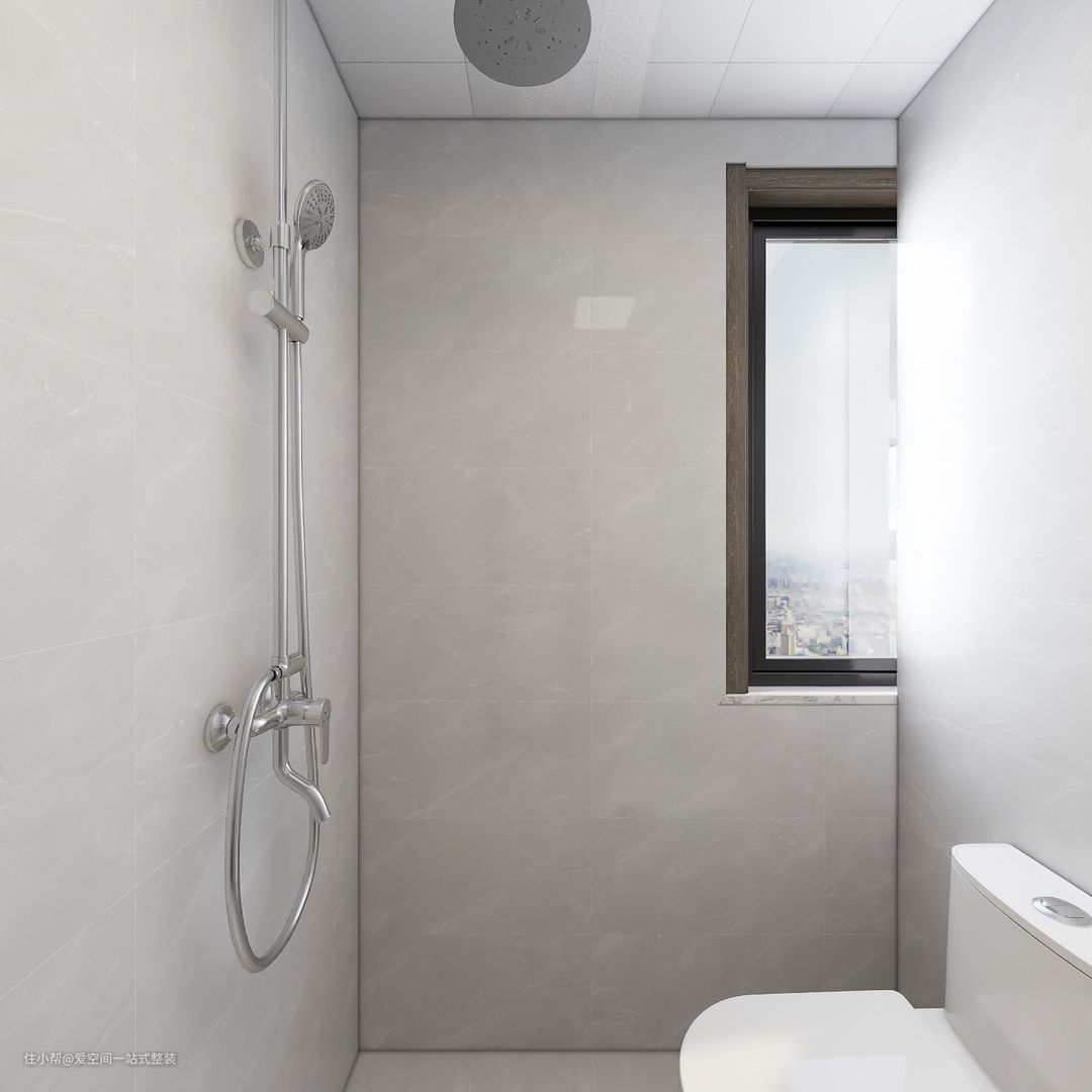 卫生间空间不大,没有做干湿分离,不过淋浴区设计到了房间的最里侧,安装的恒温花洒套装,水流温和,将洗澡的水汽对其他空间的影响降到最低。