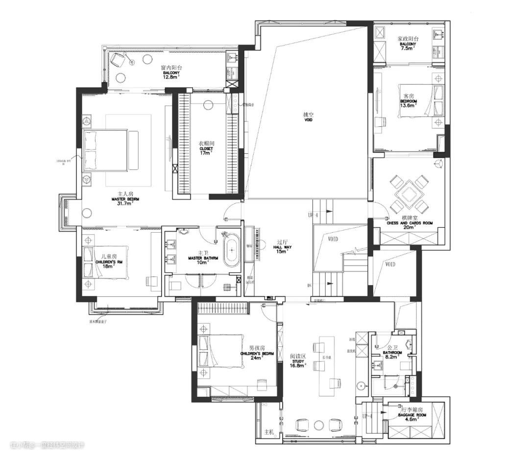 该房子原本是毛坯的状态,设计师将公区和父母房设计在一楼,方便长辈使用;二楼为主卧和儿童房空间,让隐私空间和相对的公开的公共区域区分开来。