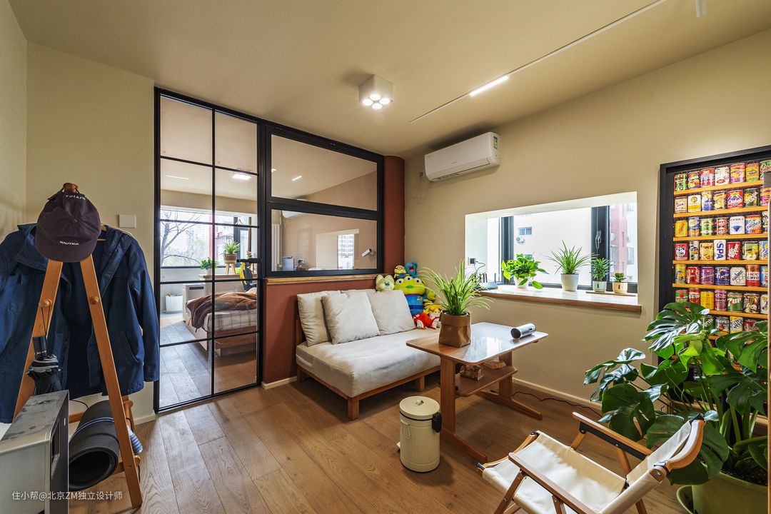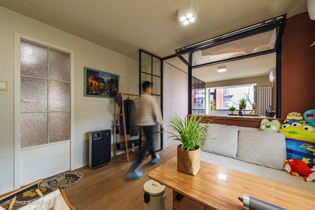 整体设计方案抛开传统家居设计的经济性原则,比如客厅最大化、收纳最大化。客厅墙色设计由从前的粉色系改为米色漆墙搭配原木色地板,未做更多的花哨,门洞的改造稍微扩大了80毫米。旨在体现实用要更具仪式感、用材质的碰撞和线面的勾勒出简单大方的空间休闲感。