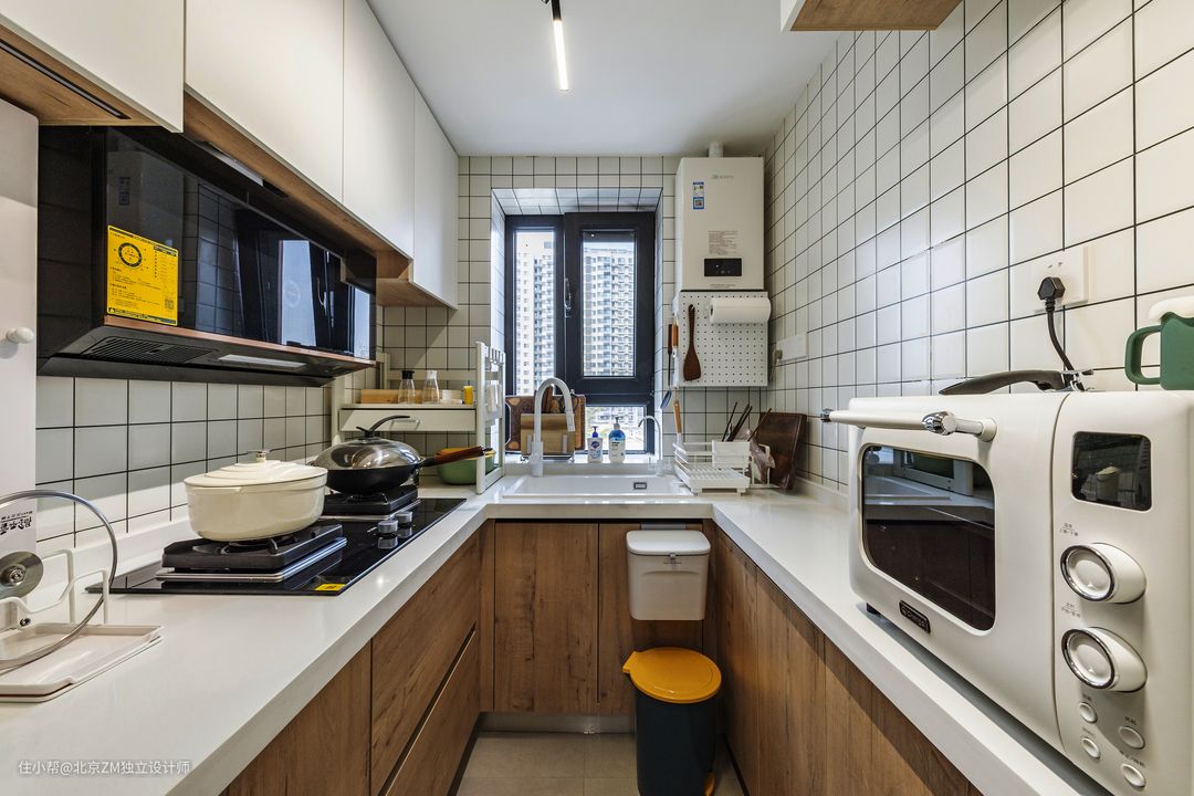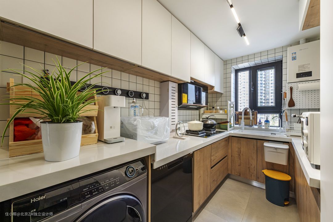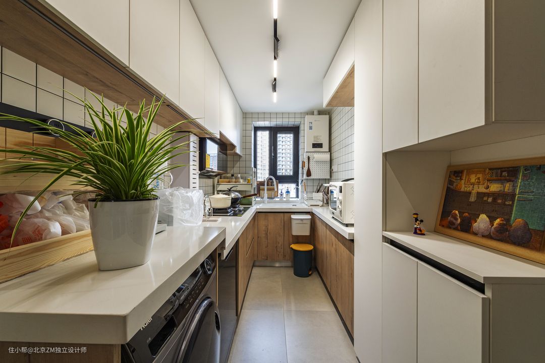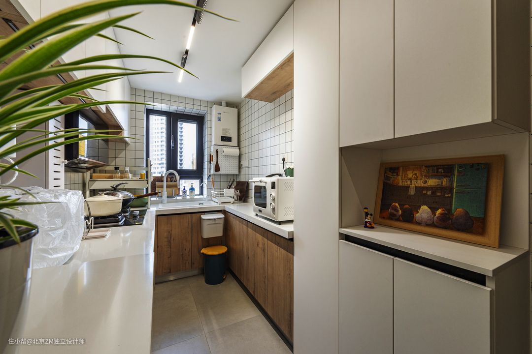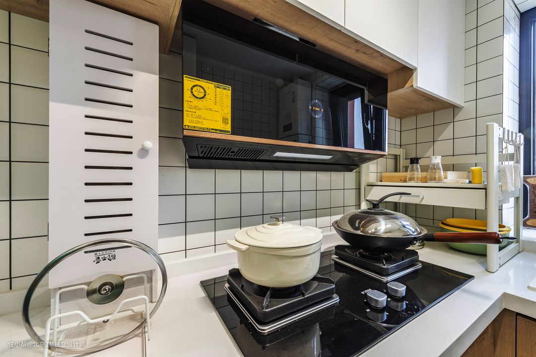 1.原始户型为一室户型,客厅很大,为了视觉通透,把厨房作为开放式设计,整体过道非常宽敞。 2.将暖气管和水立管隐藏。橱柜台面高度参考人的身高。通常在80~90cm左右。改电前考虑了冰箱,电饭煲,灶台,嵌入式家电的位置,提前布线。除了固定电器插用了两个备用插座,以备后期添加电器。上深下浅很有高级感,白色吊顶简约耐看。 3.家里的电器越来越多,越来越不可忽视,尤其是对于居家人群来说更是如此。颜值时代,厨房家电产品的颜值无疑是重要的。普通人可能更关注单品是否好看、有趣。但对于一个“高级感”的家来说,则更在意整体的融入。