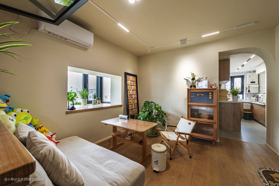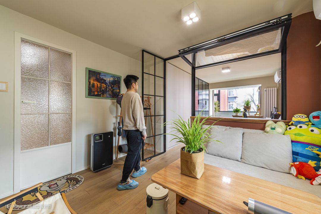 整体设计方案抛开传统家居设计的经济性原则,比如客厅最大化、收纳最大化。客厅墙色设计由从前的粉色系改为米色漆墙搭配原木色地板,未做更多的花哨,门洞的改造稍微扩大了80毫米。旨在体现实用要更具仪式感、用材质的碰撞和线面的勾勒出简单大方的空间休闲感。