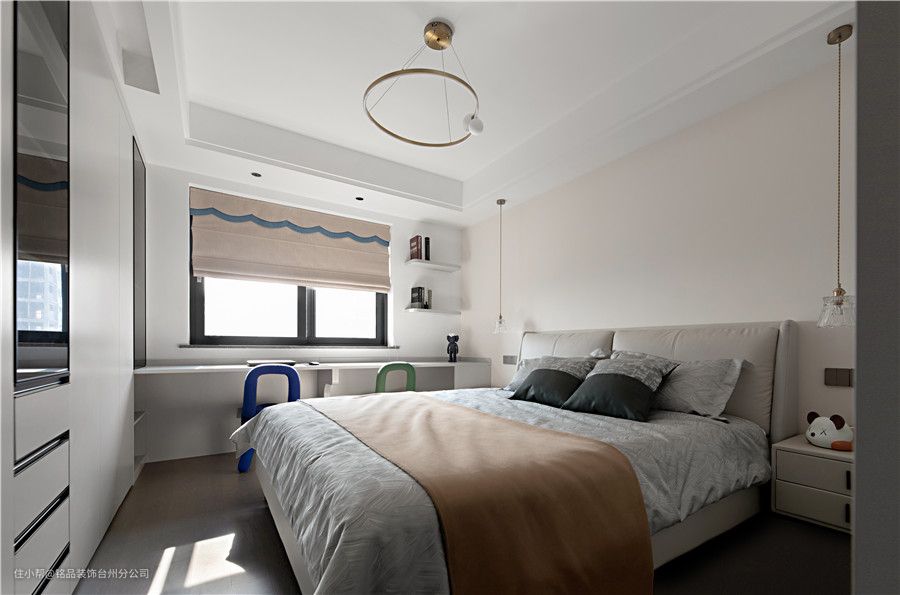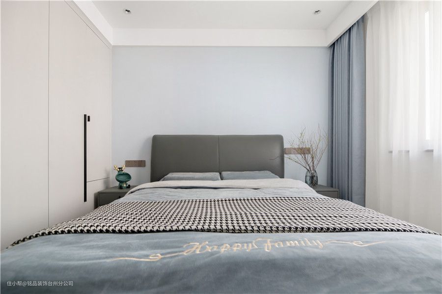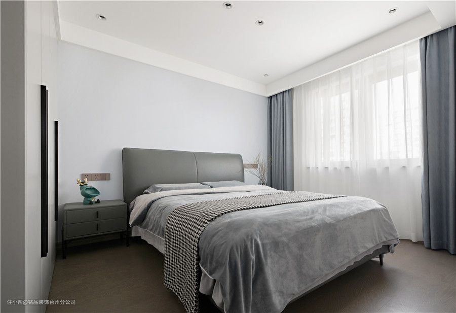 主卧采用无主灯的设计,从而让整个房间更为现代化,极简的色调纹理,在柜体与窗体的衬托之下,舒适极了。