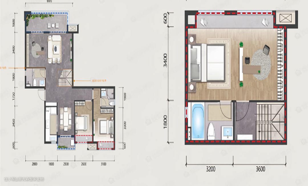 次卧的设计相对就简单了一点,同样的地台床,搭配上一盏吊灯,面积虽小却十分温馨,营造出了一个舒适的睡眠环境;另外一个小次卧设计师改造成为了一个书房,靠窗定制了榻榻米,床位定制了到顶的衣柜,收纳能力满满~ 床头的悬空书桌,还可以充当床头柜使用,悬空的设计不仅设计感强,还便于打扫;上方安装了一个壁挂的书架,线型灯带的安装就算晚上关上灯,也可以舒心地看书,还可以很好地保护眼睛。