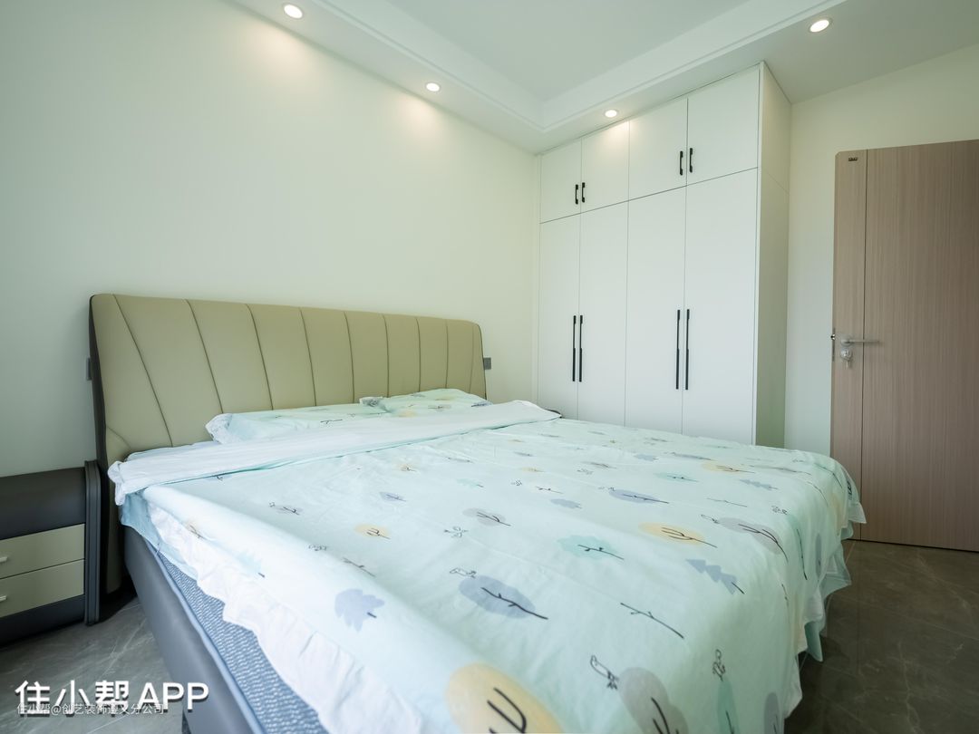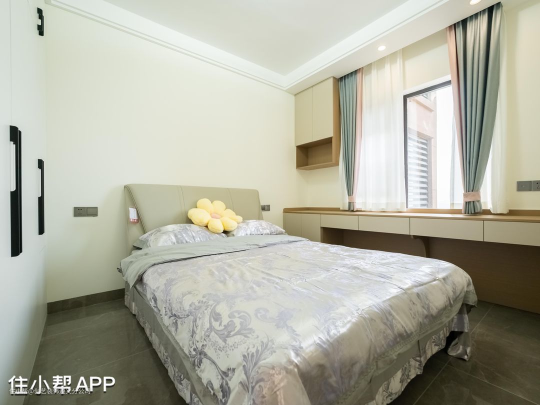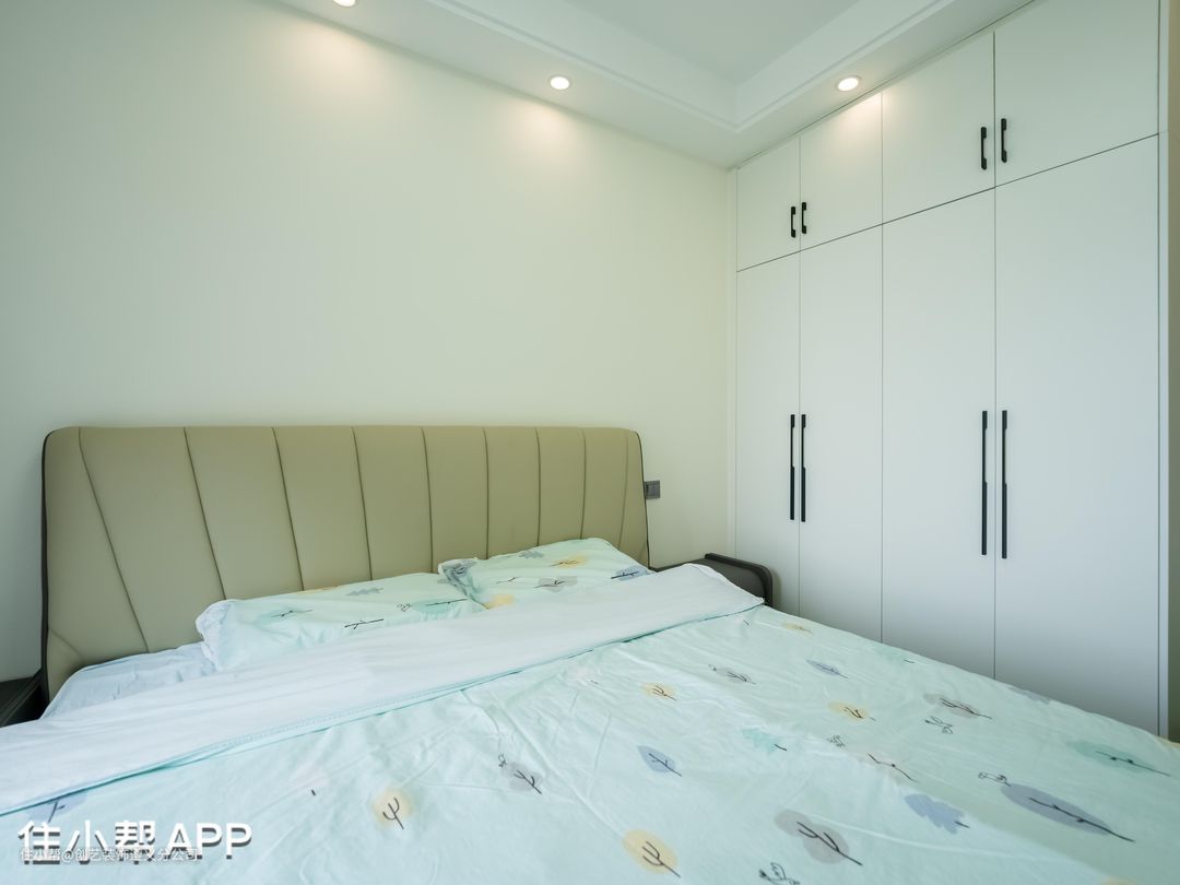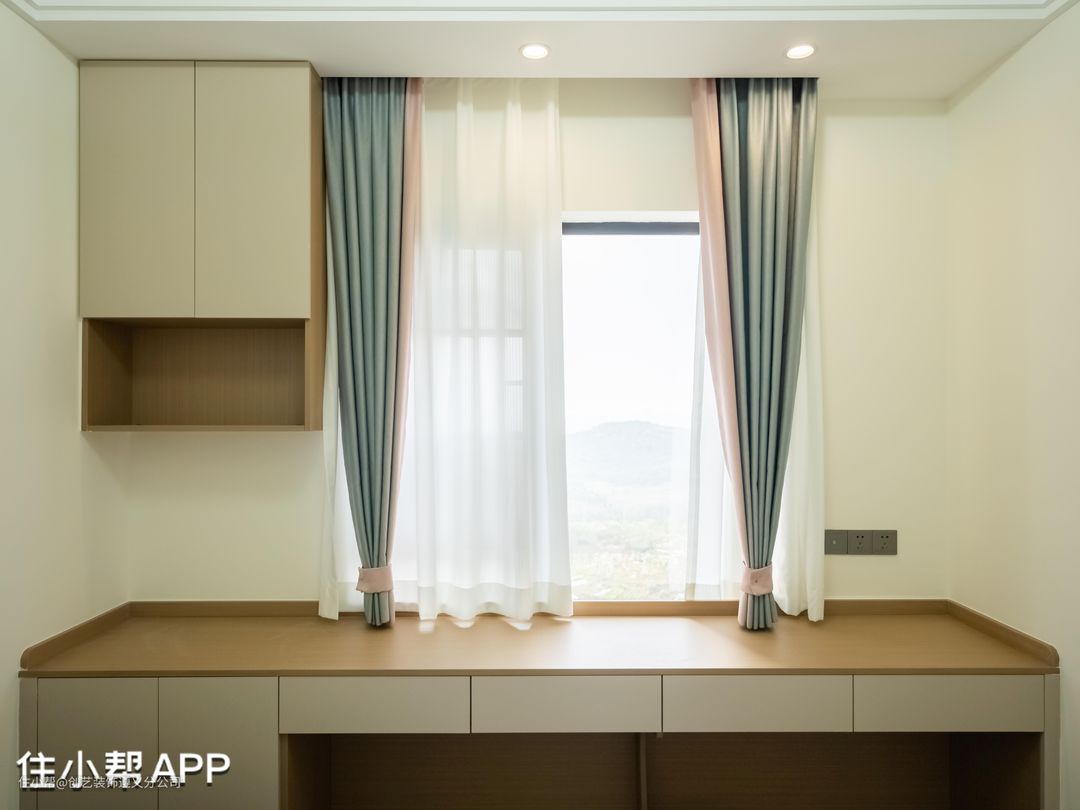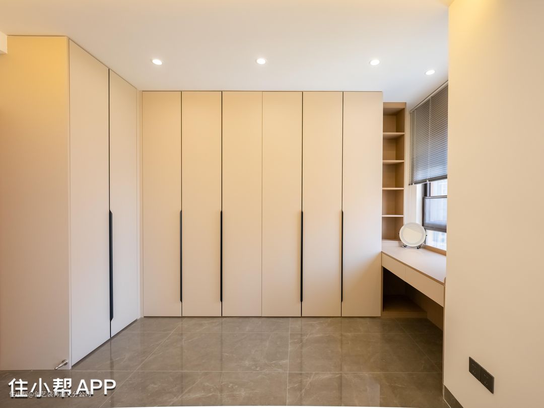▲衣帽间 ▫️ 主卧隔出一侧做衣帽间,小小空间,梳妆台连接衣柜,方便日常梳妆打扮,将品质感发挥得淋漓尽致 √ ▫️ 柜门全都选择奶油色系,清爽又温柔一门到顶的柜门,如果全靠反弹器会有点吃力,装个极简款的把手也很好看,开关门会轻松很多 √
