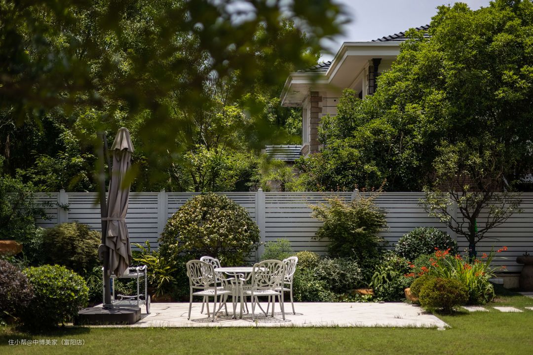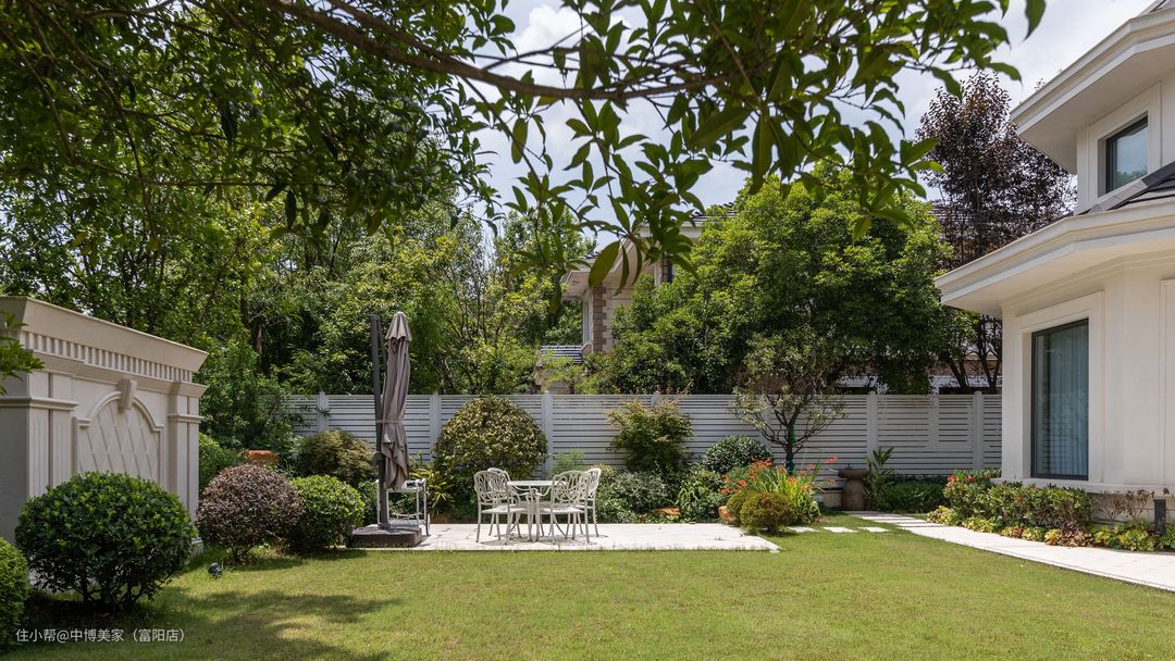 走进庭院就能感受到浓浓的绿意,草坪、鲜花、矮树和大树等布置得错落有序,让小院显得格外生机勃勃。