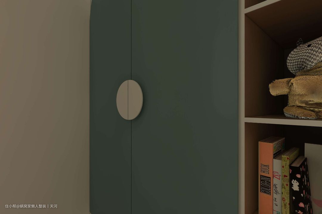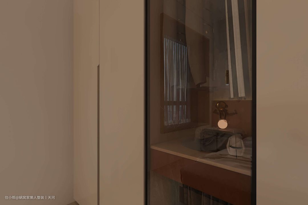 本案的主卧空间相对来说还是蛮宽敞的,里面包含有独立的卫生间、独立的衣帽间以及精致的飘窗,一应俱全,非常的便捷。大床左右两侧均是以相对称的床头柜以及宇航员状的床头灯搭配,特别的有意思。而独立的衣帽间除了可以收纳衣物,还留有一张梳妆台可供在衣帽间里面简单打扮梳理,简直方便之极。