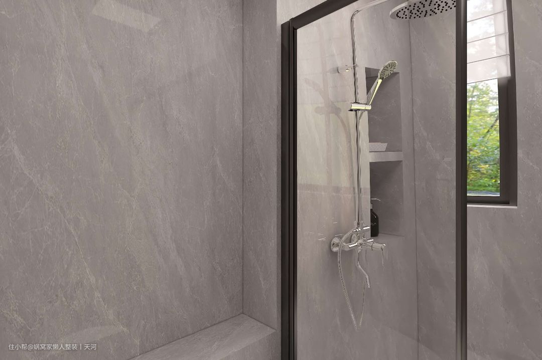 有着这样一个高级的主卧,怎么会缺少一个精致高品质的卫生间呢。主卫生间里面地板采用的是净面的白色,而墙面的瓷砖则是采用的灰色调的大理石纹,充满现代化且颜值满满。而淋浴、洗漱、如厕的区域是层层分明的,三分离的形式使得整个空间互不干扰,干净、通透。洗漱的区域还精心的布置了一面长长的镜子,对于女生平日梳妆打扮,简直是方便极了。