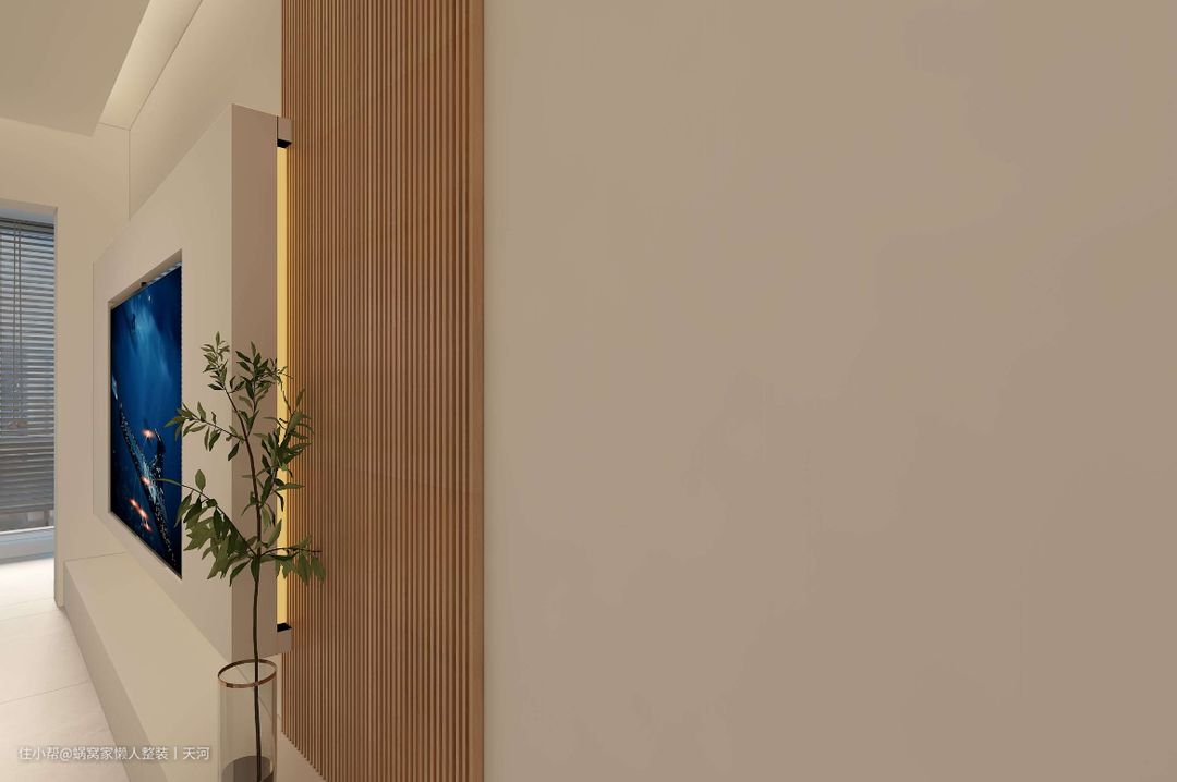 本案的客厅也是充满了简约风格的感觉。客厅与阳台的空间是打通连通的,这样的打造,使得整个空间足够的宽敞。客厅的沙发选用的是面包状的设计,米色与深绿色相间,给人一看就好想扑上去躺着的感觉。电视背景墙则是以竹筏状的木板相衬,电视直接的嵌入到净白的墙面里面,电视柜同样的采用净白的水泥堆积而成,再放置一盆小绿植,简单且充满了生机。