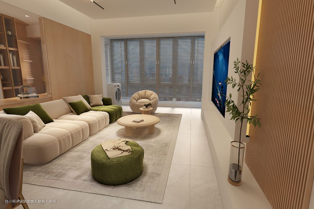 本期方案是112m²的三室二厅,业主原来的装修风格偏美式简约,而经过改造后业主希望全屋风格偏奶油风。全屋在软硬装饰上以有着符合现代简约风,但又不缺精致。因此,设计师在整屋设计上,也是经过一番深入研究,即使屋内的一桌一椅,都无不泛着满满的现代简约的气息。
