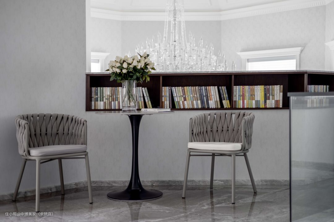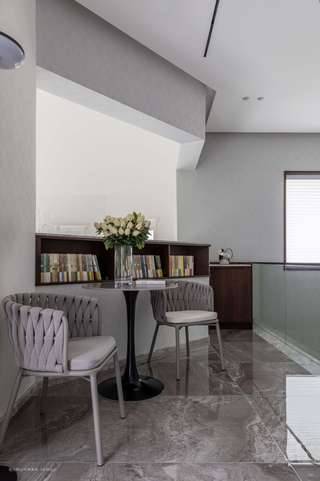 二楼的转角区打造成成步入式走廊阅读区,摆满了家人喜欢的书籍,空气中满满的书香气息,让整个家居品质得到了提升。