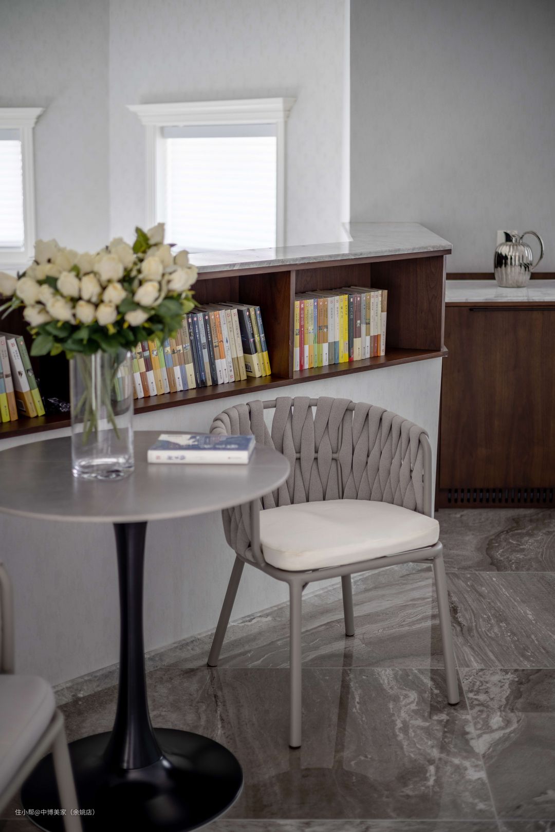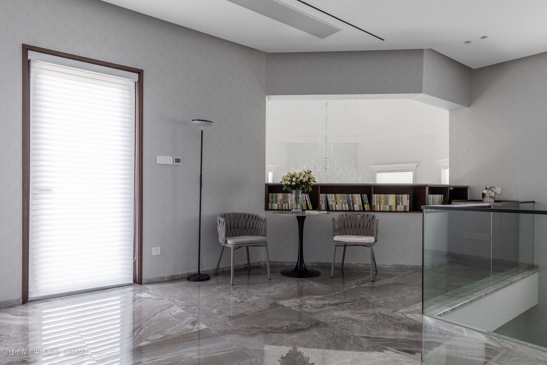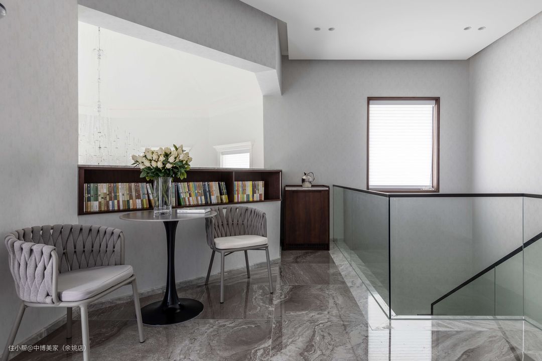 二楼的转角区打造成成步入式走廊阅读区,摆满了家人喜欢的书籍,空气中满满的书香气息,让整个家居品质得到了提升。