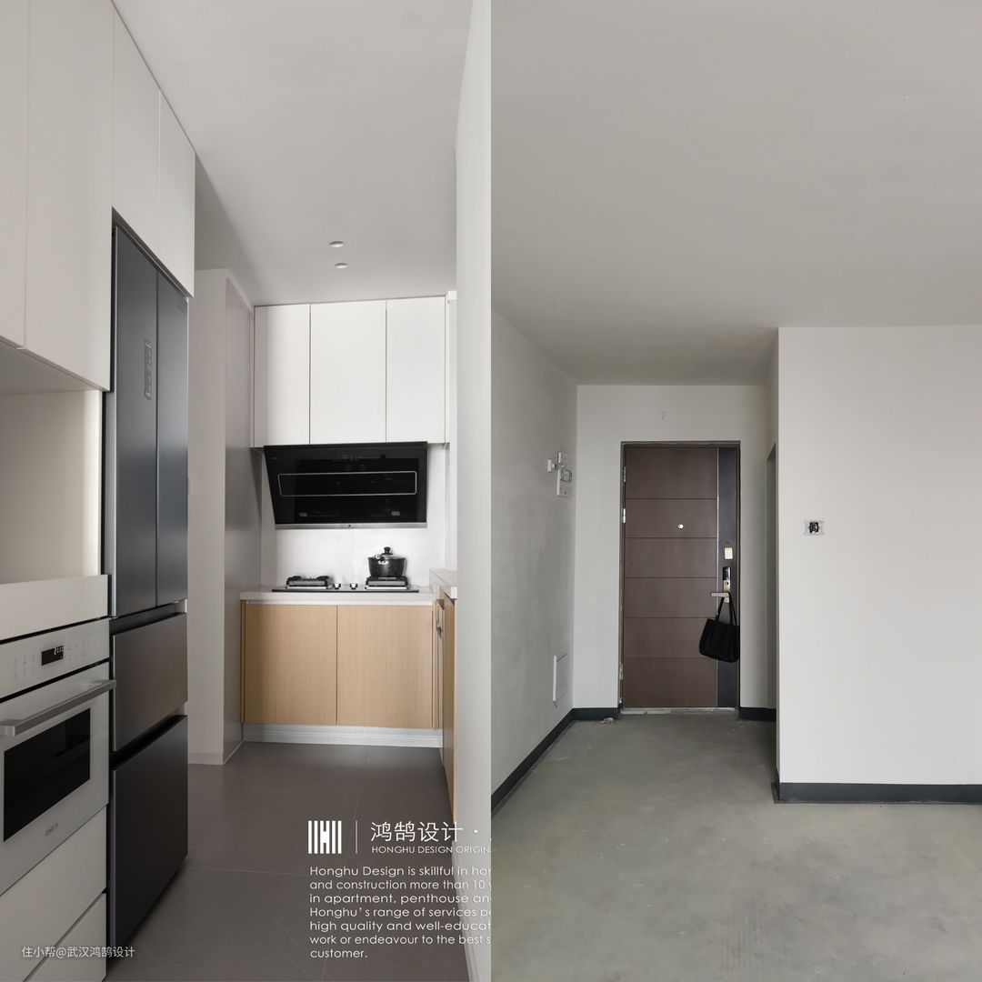 改造设计思路: 除了解决户型上的问题,更要了解业主的居住需求:业主妍是一个人在武汉上班,房子主要是她一个住,但是父母可能会偶尔回来。 于是我们把小三房改成2房,把采光最好的一间房作为她的卧室;另一间房作为多功能房满足居住、休闲、收纳等多种需求;拆除部分墙体,客餐厨区域“回字形”动线,厨房做成开放式空间,让风和光线在空间里自由流动 解决问题: 一个房子,代表什么? 它是承载生活的容器,是在日复一日忙碌和柴米油盐中,那个能够让自己感到温暖舒适的庇护所 是那张能让你深陷的床; 是倾听你嬉笑怒骂的沙发; 是定格清晨第一束阳光的阳台...... 房子始终是为住在里面的人服务,所有的出发点永远是为了人更方便,更舒服,更幸福 在和业主妍交流中,不断的汲取、分析、调整她对家的想象。看似是我们在帮助业主实现理想中的家,实则业主让我们受益匪浅。