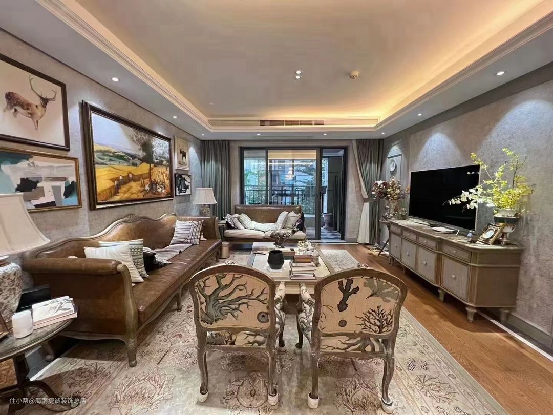 用软装来支撑美式风格,深褐色的皮沙发,舒适又耐看。