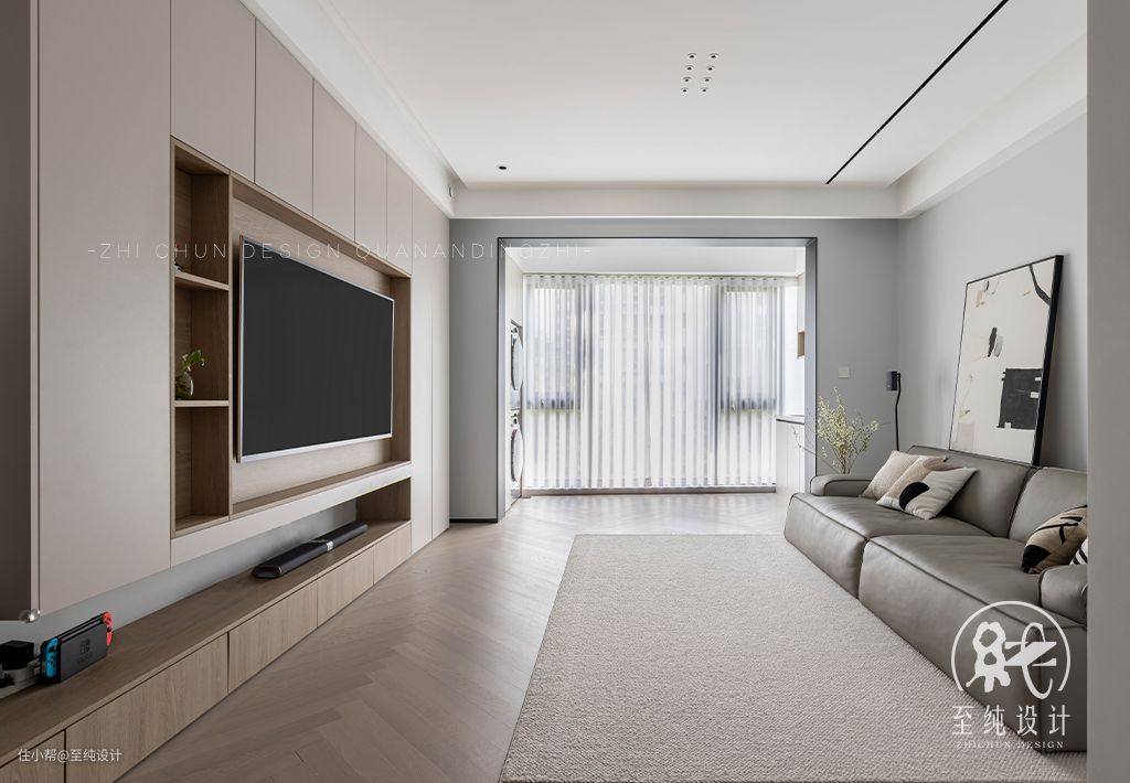 次卧之一是长辈房,和主卧同原理,一整排定制衣物收纳柜满足两位长辈的四季储物需求。 生活方式的不同,长辈房保留了电视功能,和衣物收纳柜融为一体,既增加了收纳空间,全屋定制隐形拉手的设计也有效利用空间,变得更加明净舒适。 一“代”一室+多功能公共空间,既拥抱属于各自的私人空间,又能赋予生活空间更多的可能;既容纳孩子成长的足迹,也能容纳父母幸福的晚年生活。好的设计,是房子和家人一起成长,共同演绎多维生活场景。