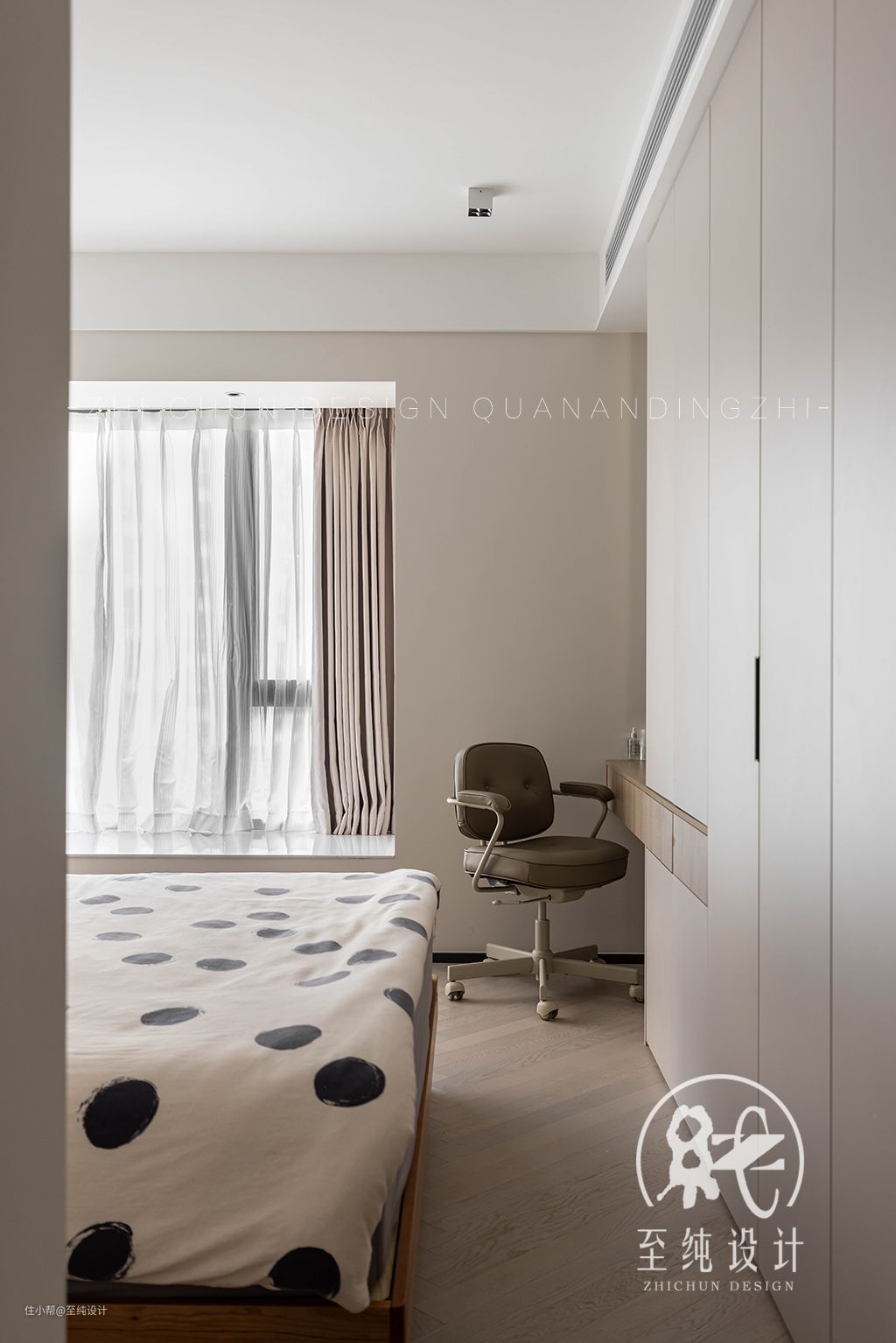 次卧之一是长辈房,和主卧同原理,一整排定制衣物收纳柜满足两位长辈的四季储物需求。 生活方式的不同,长辈房保留了电视功能,和衣物收纳柜融为一体,既增加了收纳空间,全屋定制隐形拉手的设计也有效利用空间,变得更加明净舒适。 一“代”一室+多功能公共空间,既拥抱属于各自的私人空间,又能赋予生活空间更多的可能;既容纳孩子成长的足迹,也能容纳父母幸福的晚年生活。好的设计,是房子和家人一起成长,共同演绎多维生活场景。