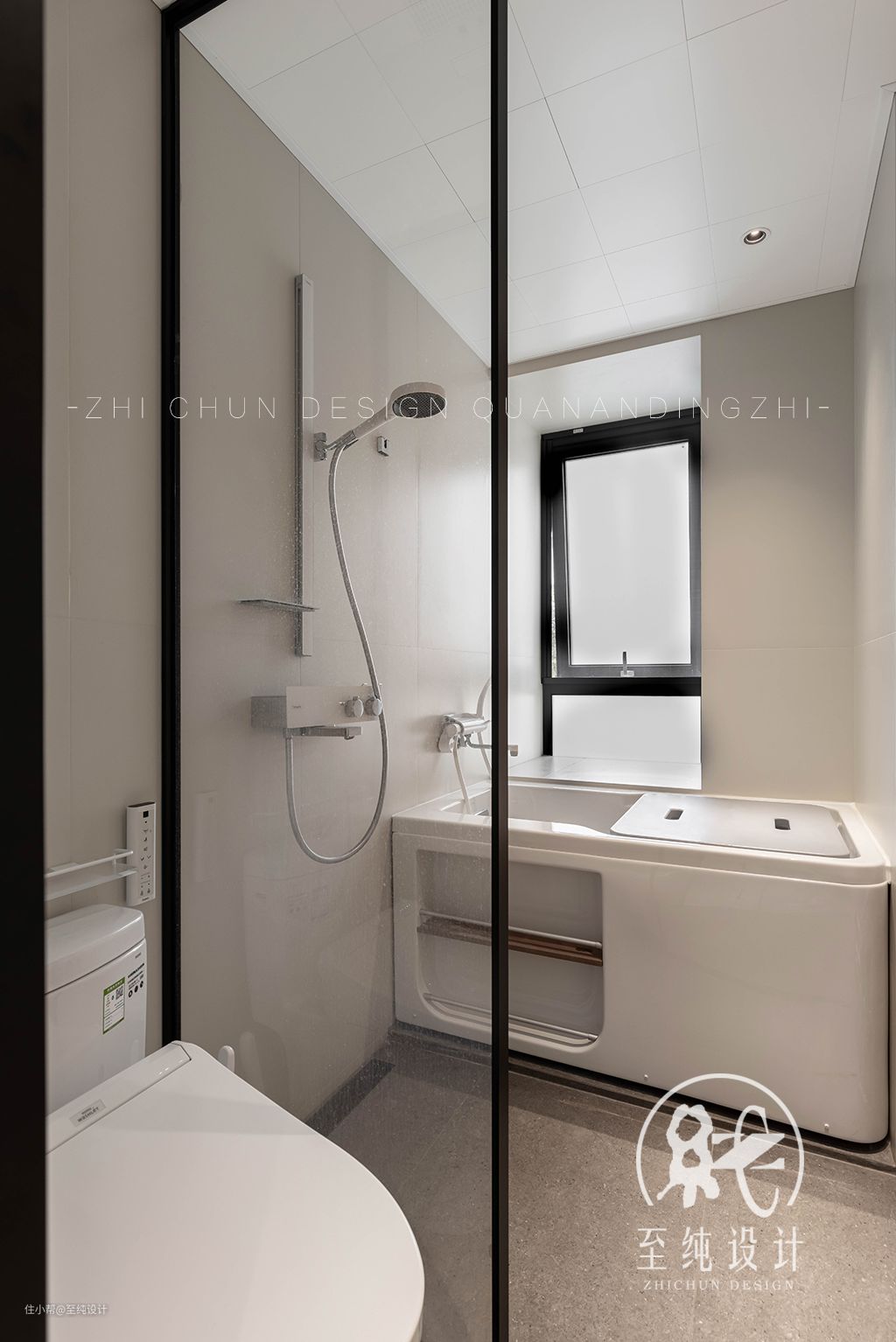 客卫是干湿分离的设计,工艺上去掉传统的门槛石及挡水条,采用地砖直铺淋浴区域下沉的办法,借坡度解决排水问题。干净利落的通铺设计日常打理起来更为方便,不再为拐拐角角的卫生死角头痛,大大减轻了清洁负担。