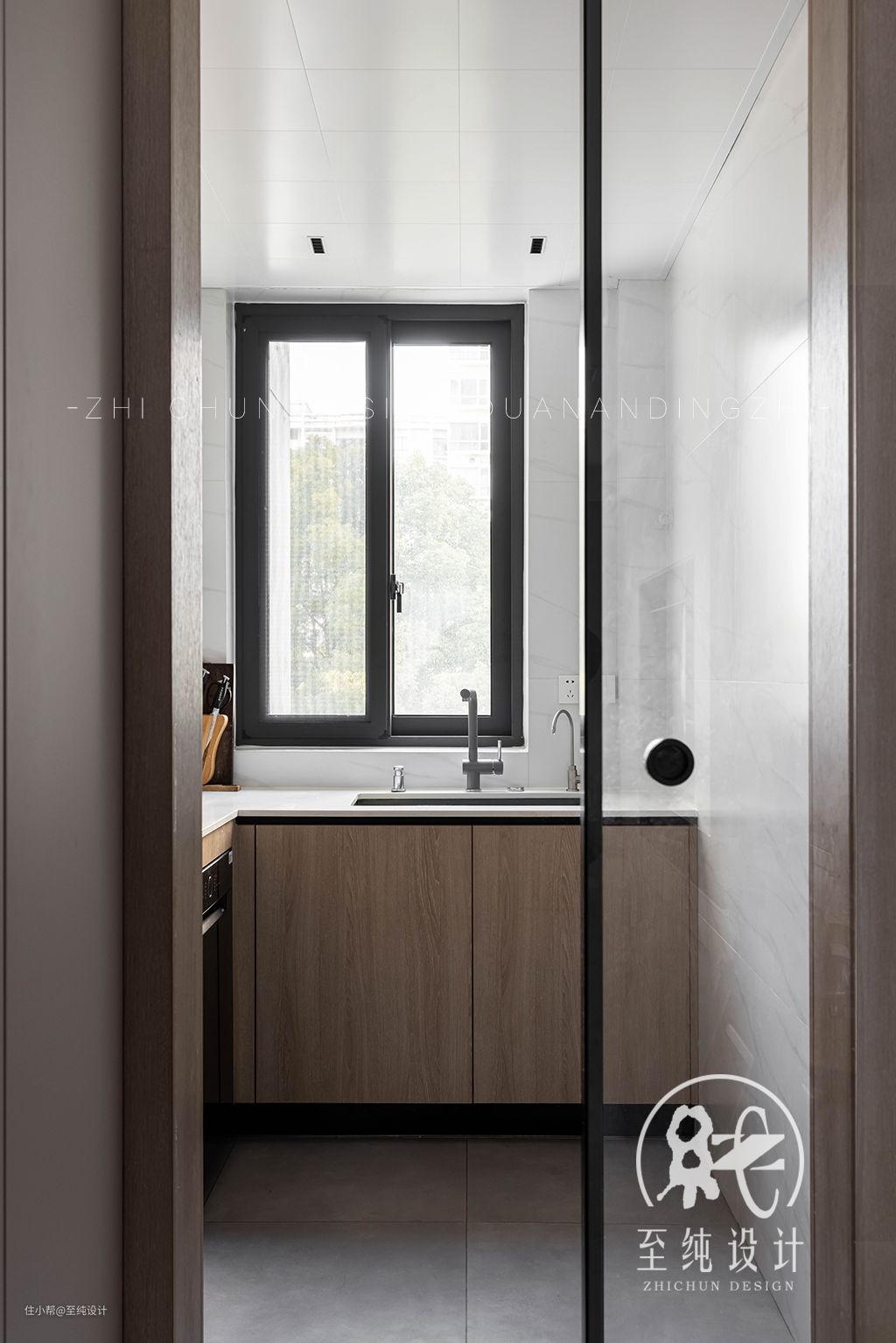中厨玻璃推拉门的设计,赋予了一种独特的功能性,光线的引入和视线的交汇,为一家人营造一种舒适轻快的生活氛围。