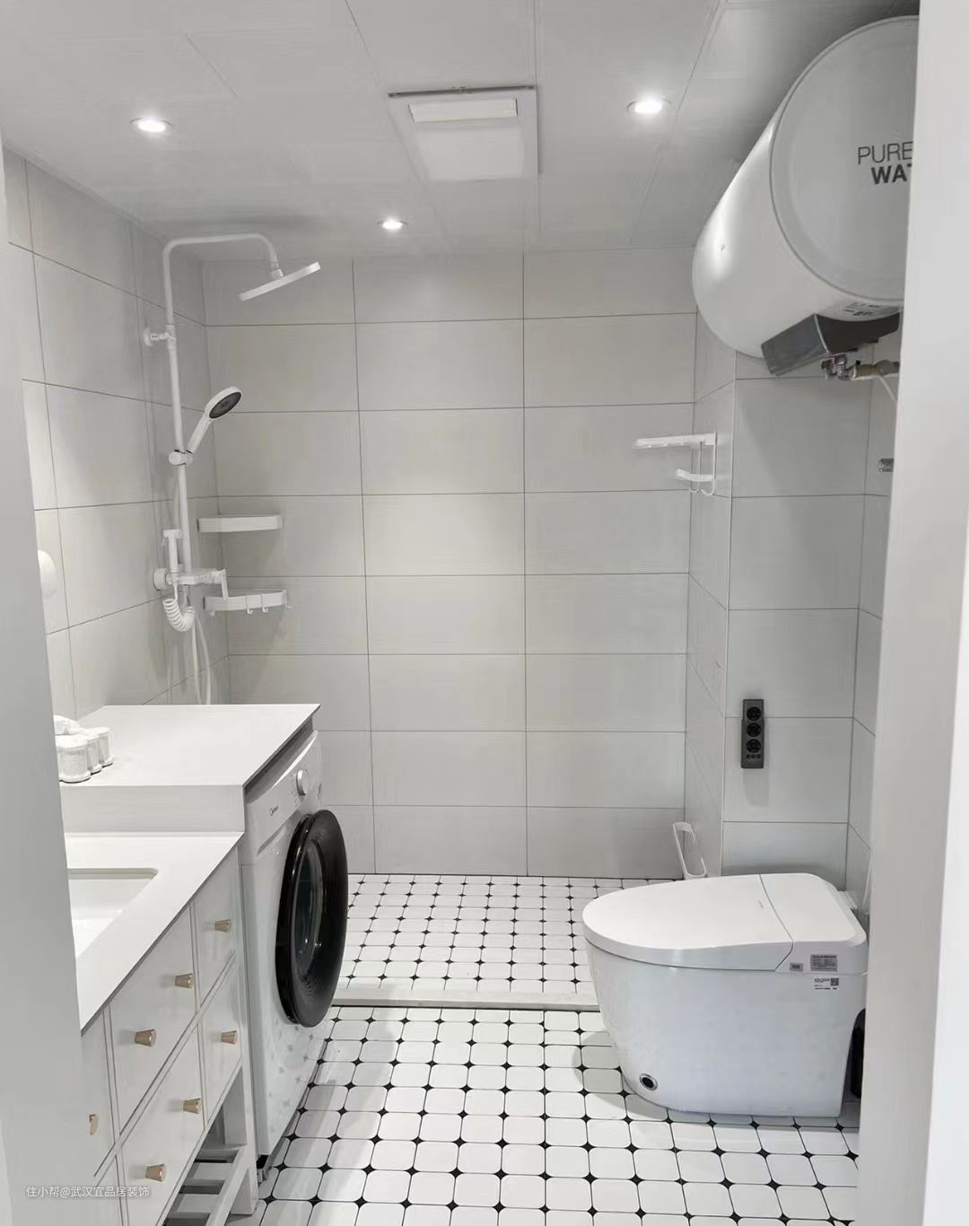 纯白岩板浴室柜洗衣机一体柜,收纳和台面摆放空间多一倍,实用又好看