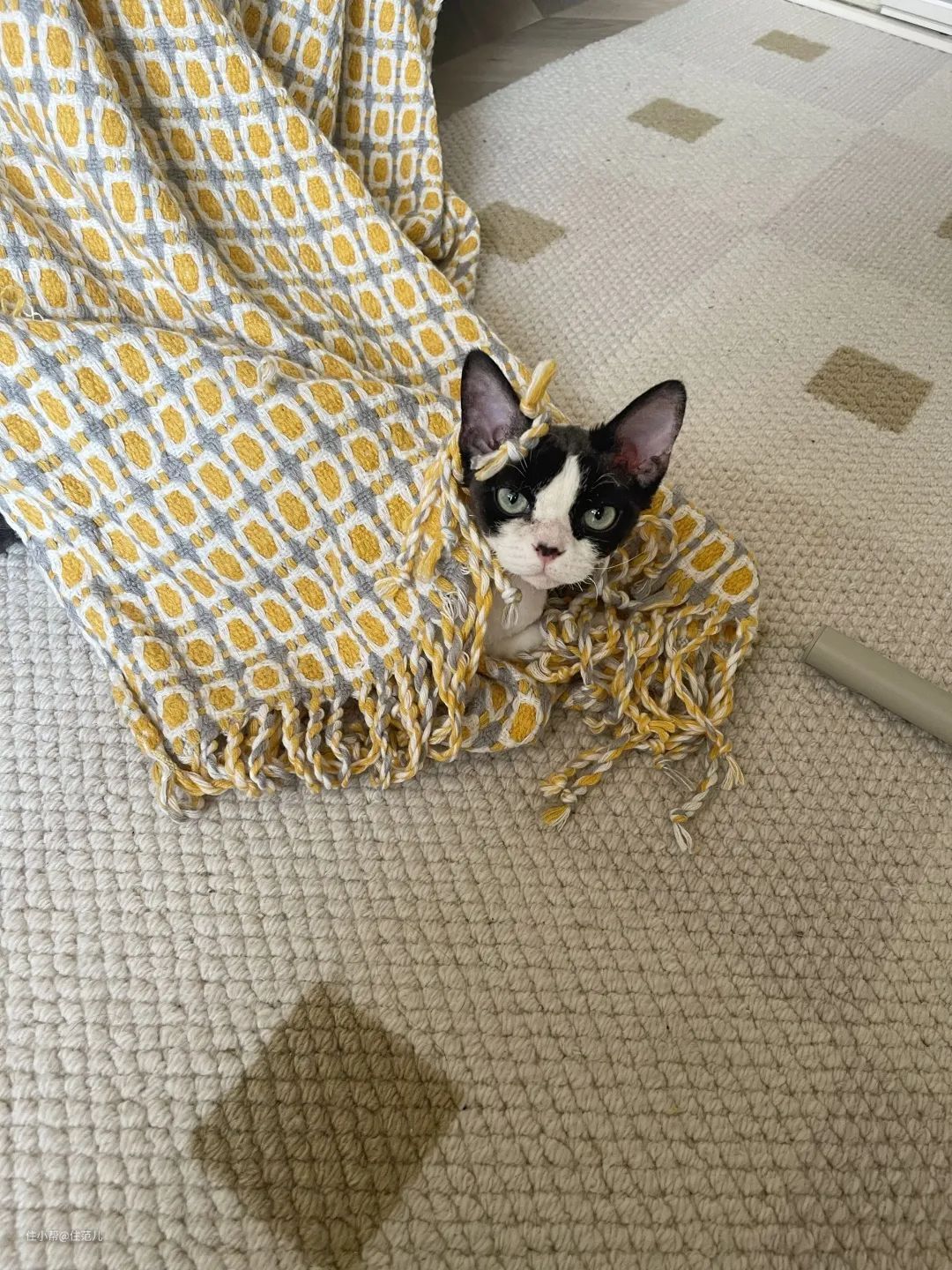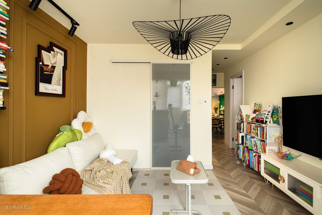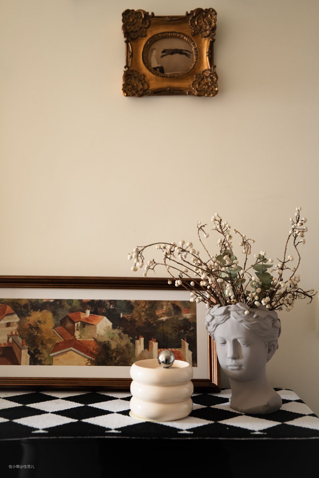 今天这期案例,地点离北京的住范儿家居Mall很近,我们上门拍摄的时候是个工作日,主人不在家,但是在门口准备好了鞋套,还有智能锁的临时密码。 不忘嘱咐我们,记得随手关门,防止屋里有一只活泼得像狗一样的猫跑出去。喏~就是这只顽皮又漂亮的德文猫👇,不掉毛,很干净。 来之前,我只看过这家的户型图,听过设计师大致描述了一下屋主的诉求,先入为主的印象就是:屋子不大,需求不少。 进屋之后,我却没有第一时间去关注——“这些需求是如何通过设计解决的”。而是很纯粹的,作为一个有一定审美的文艺青年,被这间屋子美到了。 非要说风格,可能带点轻法式,还有些美式复古。其实我个人崇尚的是极简,墙面、地面的大面积留白,但是并不影响我欣赏它,对美的领悟存在于细节处。 屋主说,她的屋子并没有朝着某一特定的风格去设计,而是在挑选家具或者装饰品的时候,就会自然流露出一种熟悉感,从而做出选择:它是适合我家的,应该属于我的,我喜欢的风格。 如何找到这种感觉?我们接下来还会讲到。 🔍项目信息 房屋位置:北京朝阳 房屋面积:建面68㎡ 房屋户型:2 室 2 厅 1 厨 1 卫(改后) 装修套餐:颜值革命 5.0 常住人口:1大1小