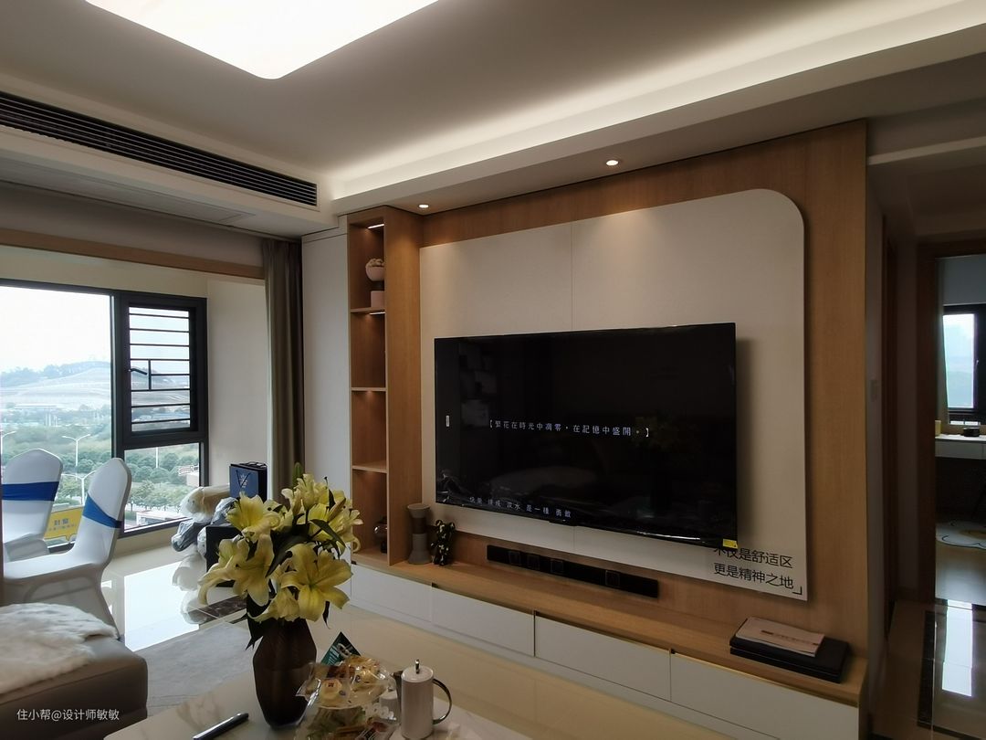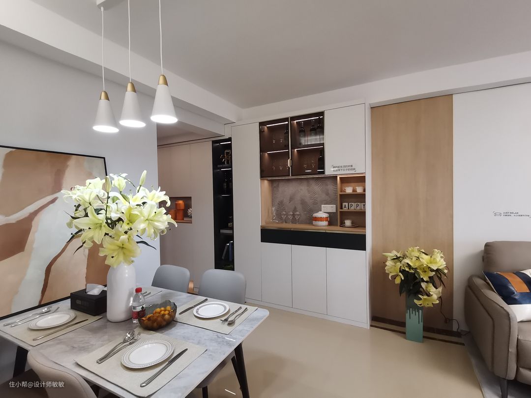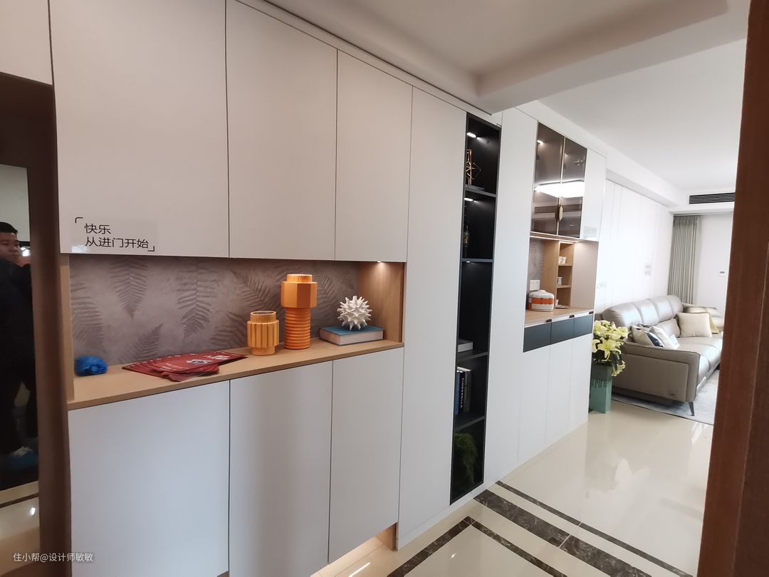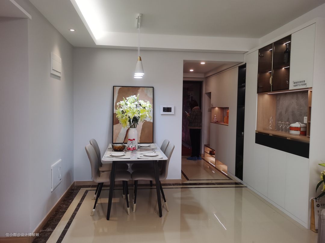 90㎡三房,玄关柜连着餐边柜设计,很会用空间!