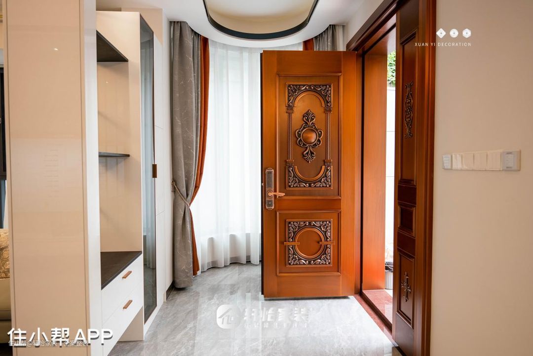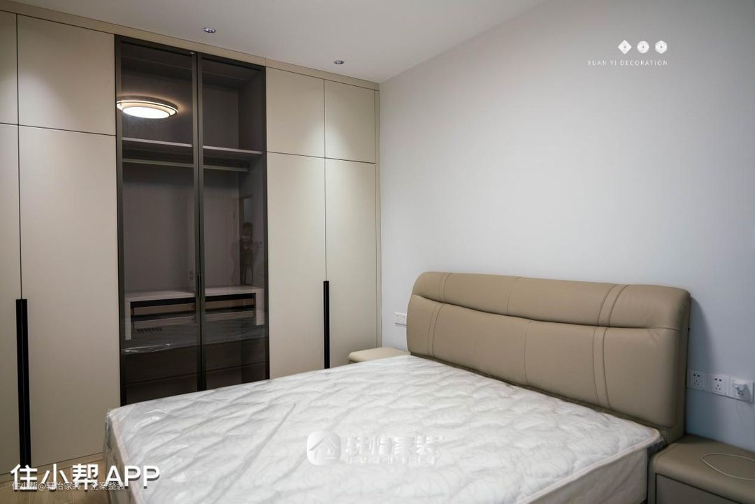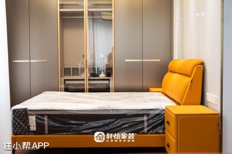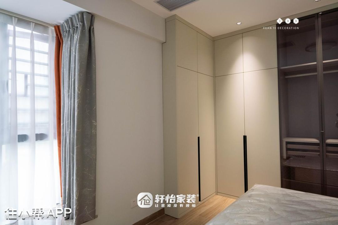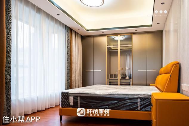 次卧空间整体色系是灰色,有灯光氛围的加持,使得空间清新悦目。业主在定制柜的选择上,多用透明玻璃面板,对于衣物的选择更加清晰明了。 银色+橙色窗帘是别墅内所有窗帘的搭配色系,空间互为独立,但是又拥有共同的元素!设计师完美利用转角处,做嵌入式到顶衣柜设计,让卧室有了更多收纳空间的同时,还让空间利用达到最大化。 整面到顶衣柜的收纳,是业主对整体装修的最大诉求。不仅要增加空间的收纳,还能满足空间的装饰效果,整体大气典雅,实用与美观兼得。